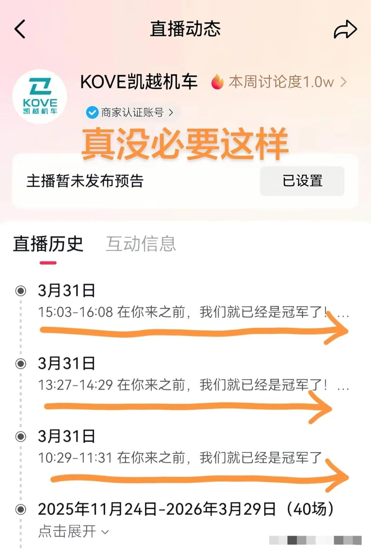 终于知道, 为什么张雪当初执意要离开凯越机车了! 没想到,张雪机车夺冠后。凯越机车不是送祝福,反而内涵起了张雪机车。 直播间标签写着:在你来之前,我们就已经是冠军了。 虽然他们说的是事实,但是他们的冠军也有一部分张雪的功劳,应该感恩的。 而且张雪这一次能够把雅马哈,川崎,甩的那么远,绝对是历史性的时刻。 作为中国机车的一份子,如果凯越机车能够格局大一些,会获得更多粉丝的尊重。 相反这样调侃,不仅对销量没有帮助,还会对公司的形象有一些损伤,没必要。。