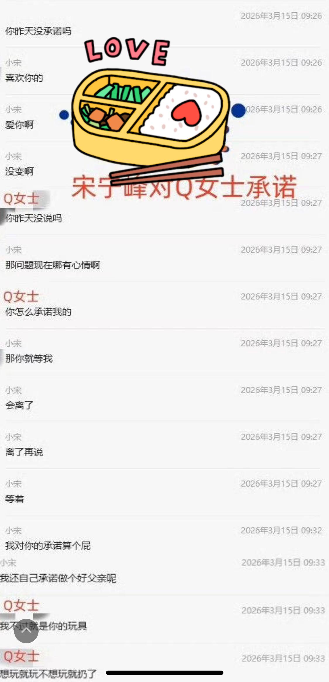 看到宋宁峰向情人Q女士借300元钱还网贷,我笑了……Q女士说不用他还了。 张婉婷和那个Q女士到底喜欢宋宁峰啥呢?难道是窝囊好掌控! 3月15日,和Q女士各种聊。3月21日,在社交平台晒一家四口的幸福生活。那时候是不是觉得自己可以搞定呢…… 结果,现在出轨新闻铺天盖地,知道要脸了……
