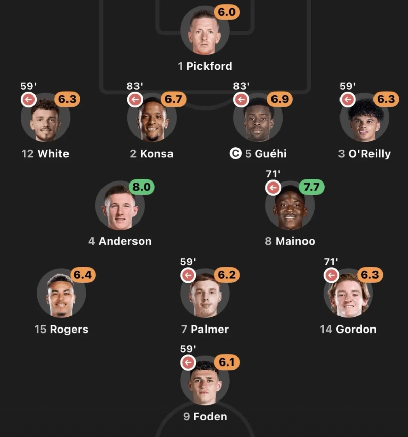 英格兰0-1日本的比赛,英格兰拿出了梅努+安德森的双后腰配置,他们2人也是英格兰首发阵容中,唯有的2名sofa评分超过7分的球员了。