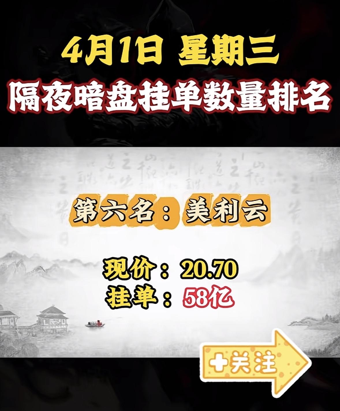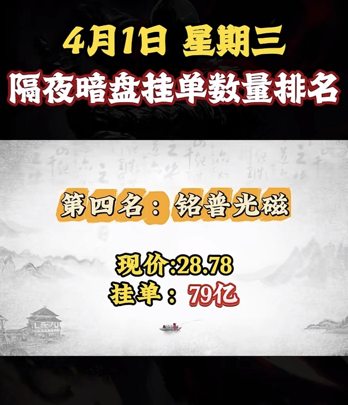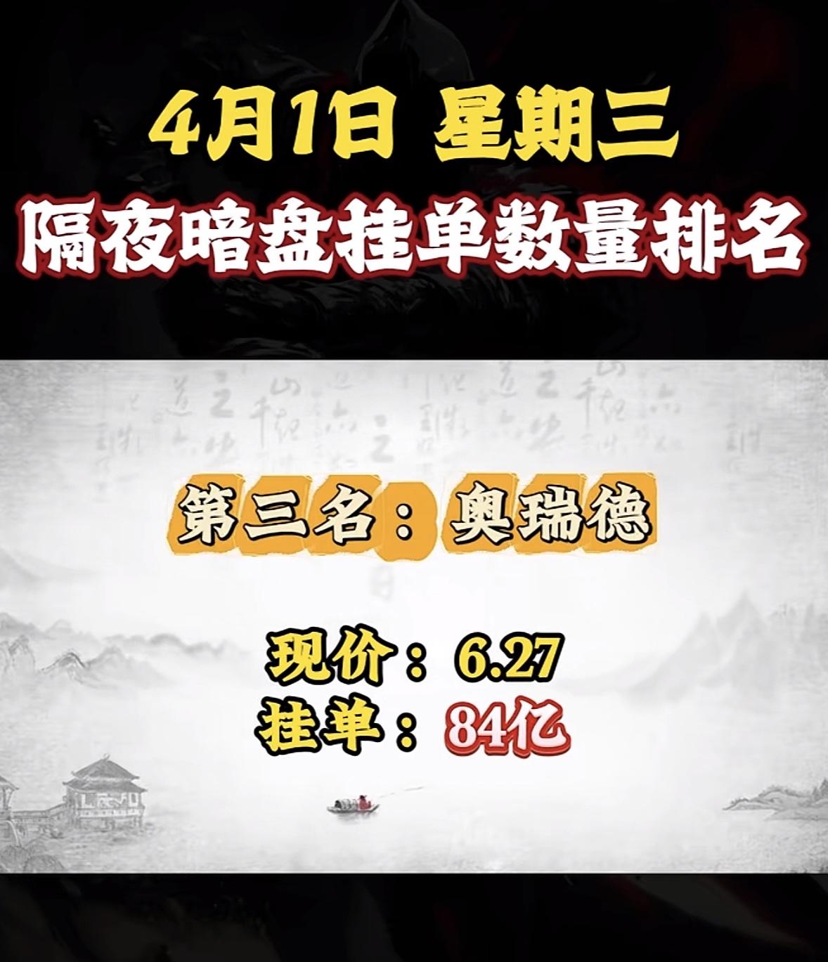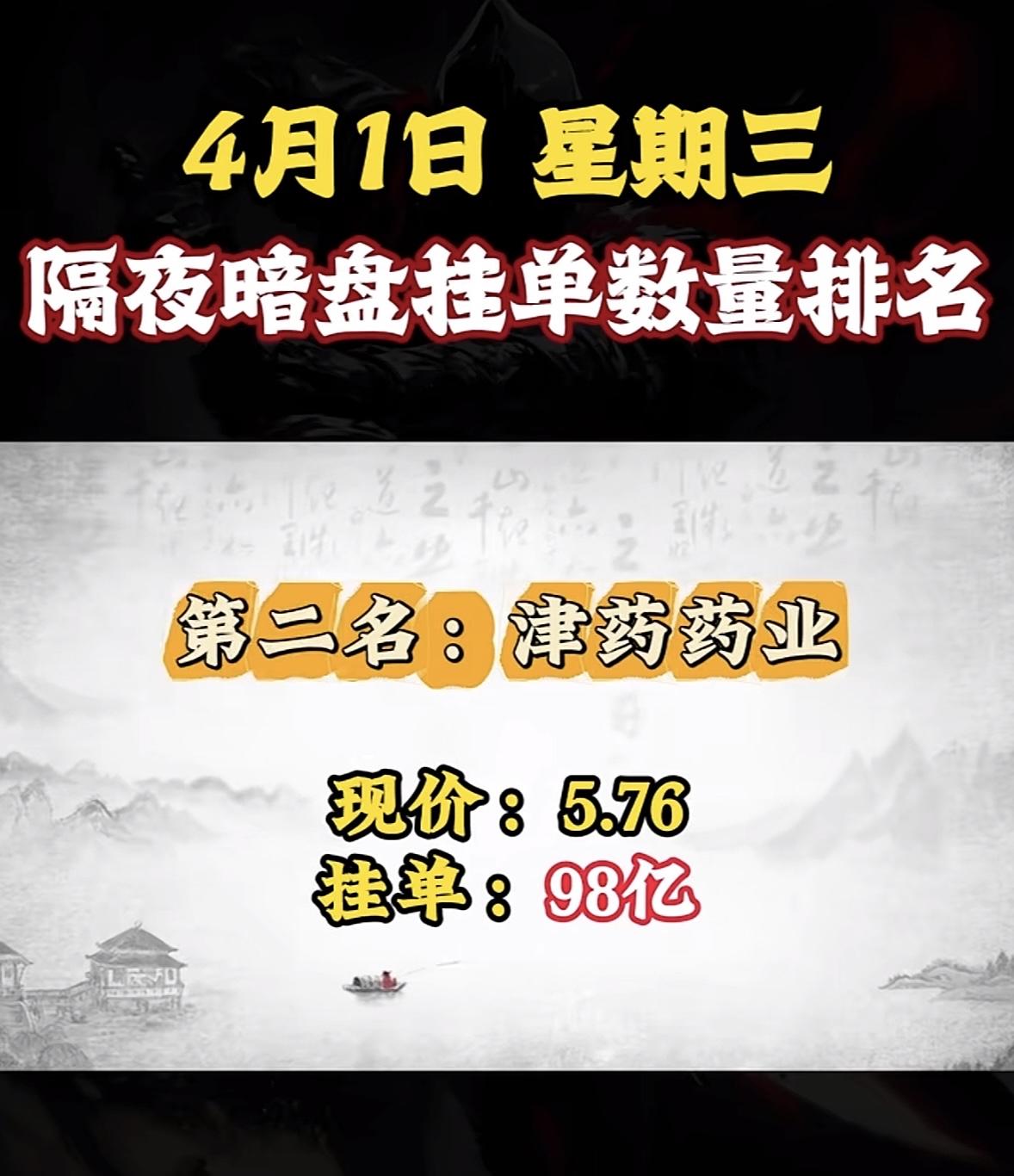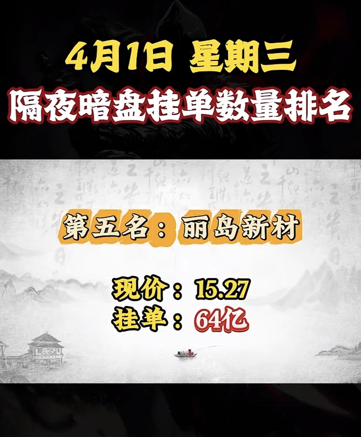 4月2日周四暗盘隔夜挂单排行榜公布 4月1日隔夜暗盘挂单数量排名第五名是丽岛新
