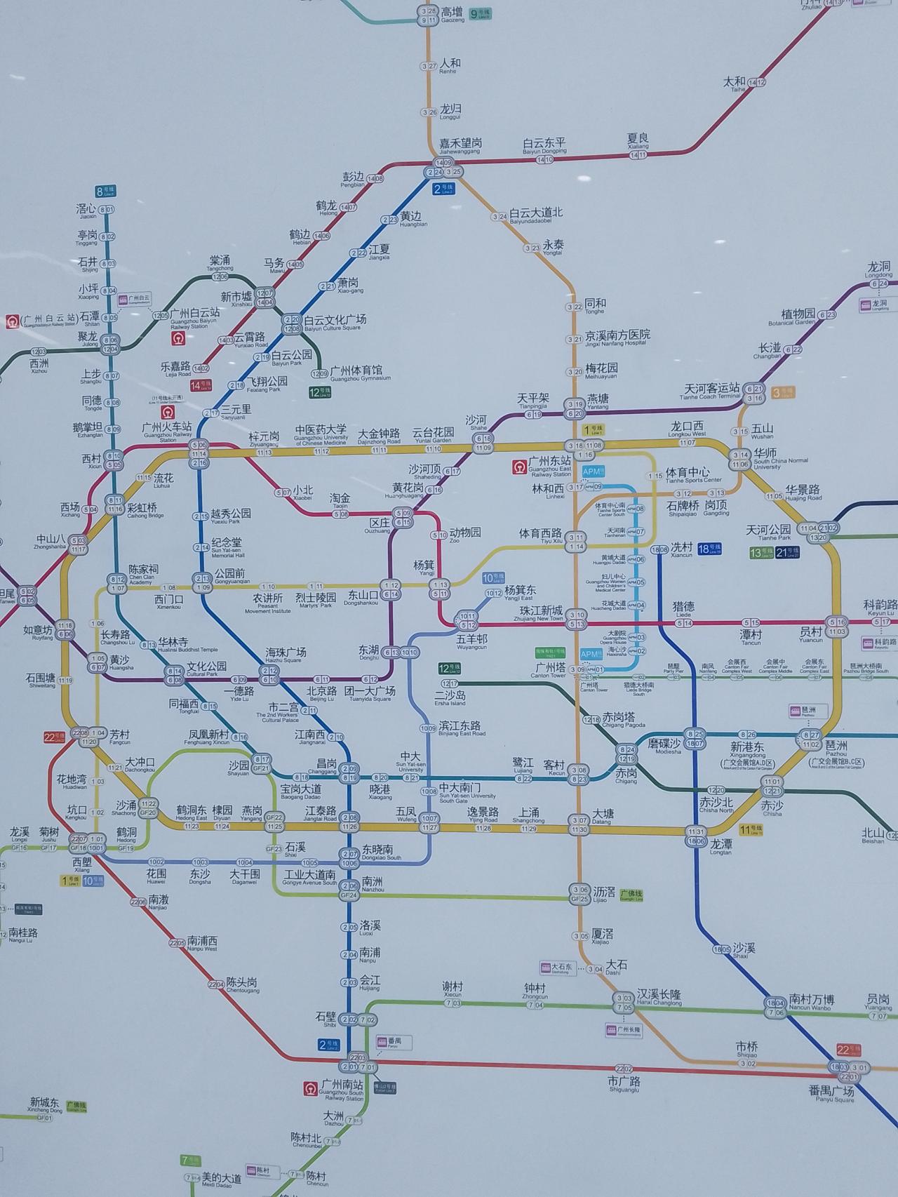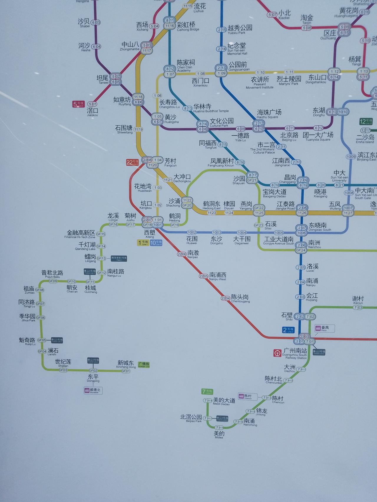 看看广州地铁的线路图,说一说广州各区的基本情况:黄埔区和增城区都位于广州的东边面积很大,黄埔区比较多企业,还有很多农庄隐藏在没有通地铁的地方,需要自己开车去或者滴滴打车去的,南沙区位于广州的东南方,面积也是比较大的,广州南站位于番禺和顺德之间,白云区和花都区位于广州的西北方,从化区位于广州的东北方,面积很大的,看看广州地铁线路图的黄色内环,基本把旧城区都圈起来了,地铁站点密集,面积比郊区少,这几年广州各区的综合排名,天河区第一,黄埔区第二。分享一下广州地铁的线路图