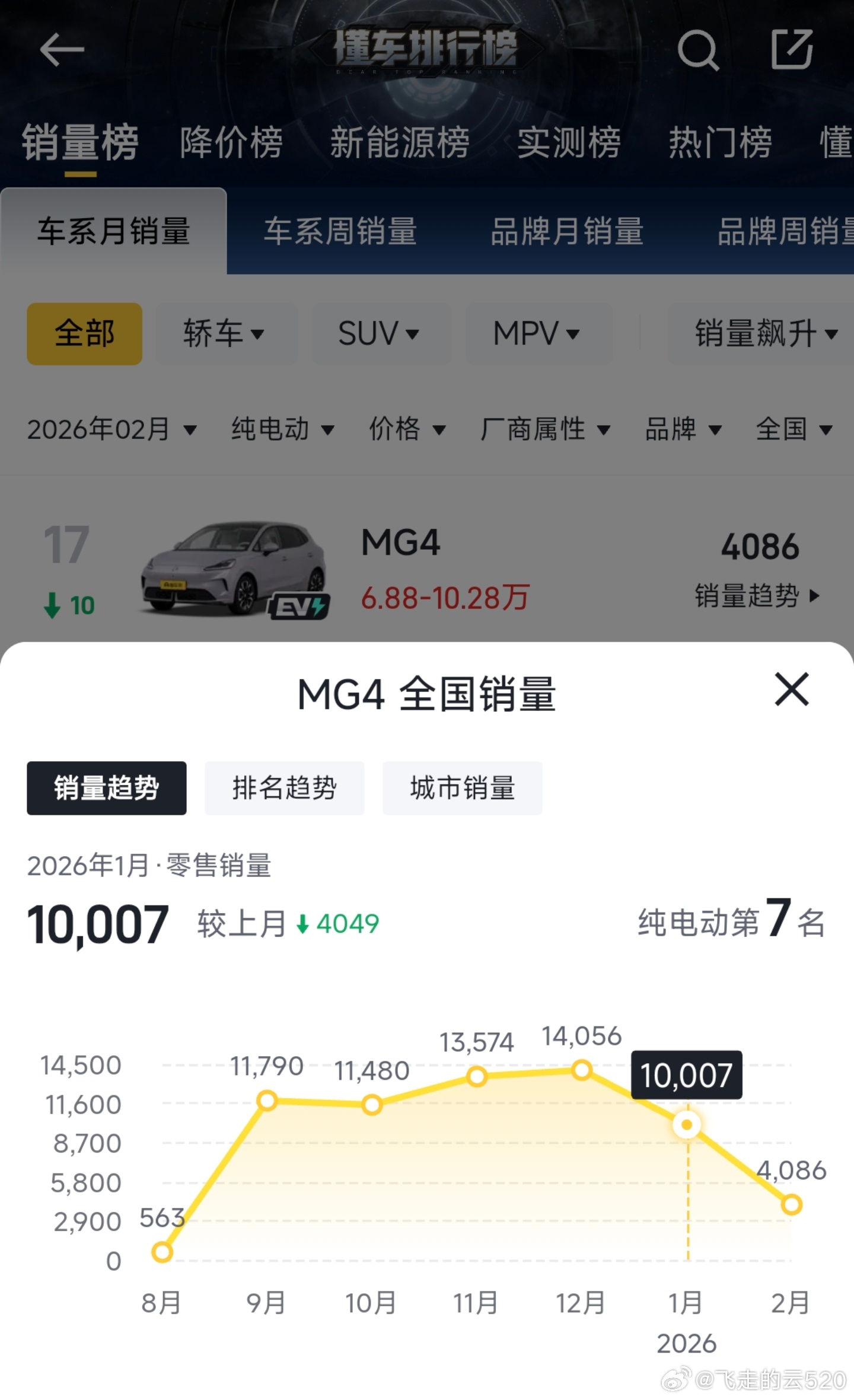 上市后的表现一直很好,除了春节假期,其他月份连续超过1万销量