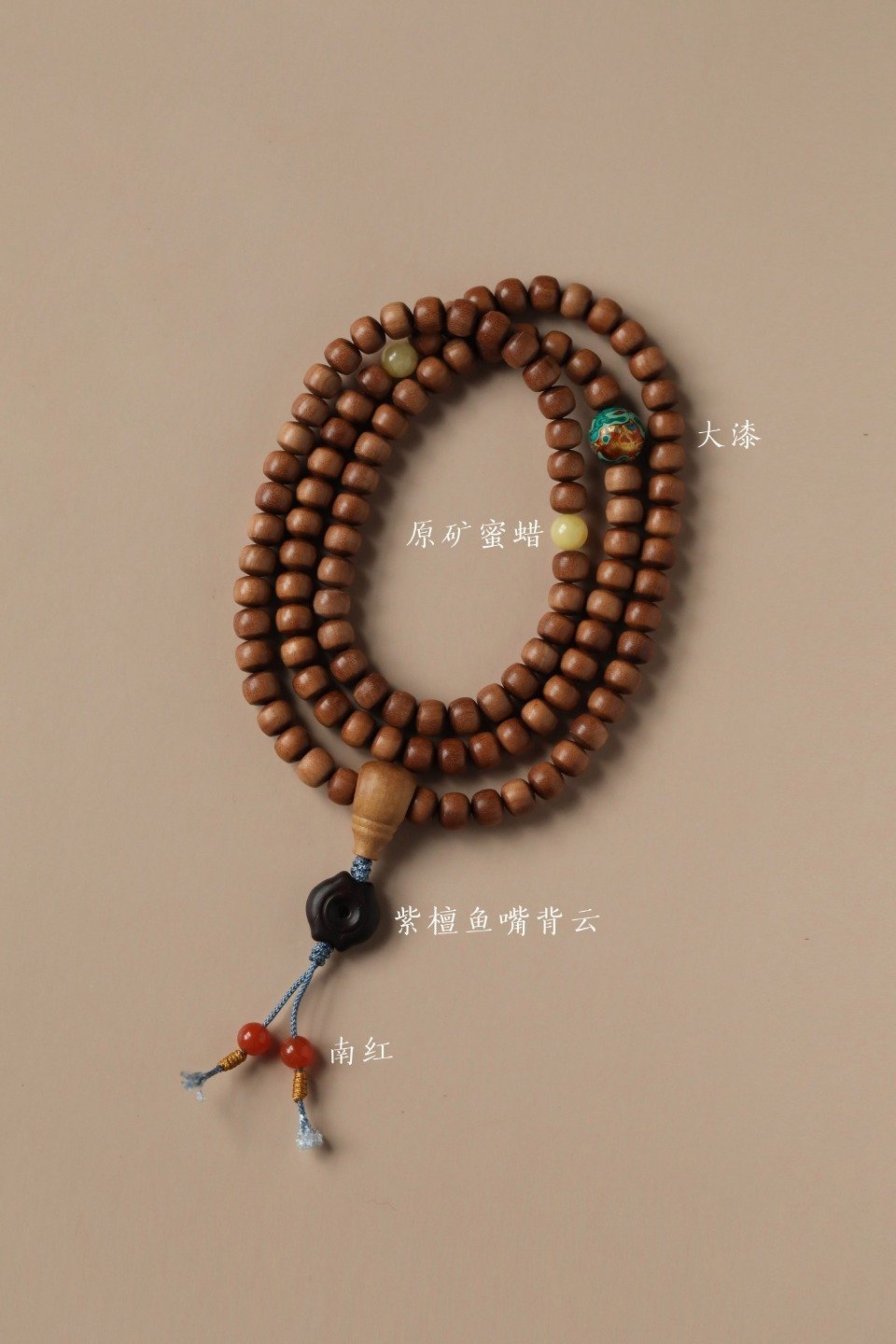 配件:大漆珠、蜜蜡、紫檀、南红 老山檀香【韶华】108颗6*7mm桶珠