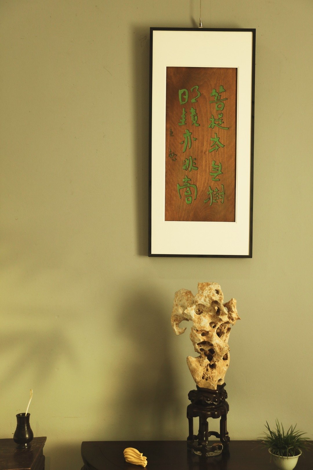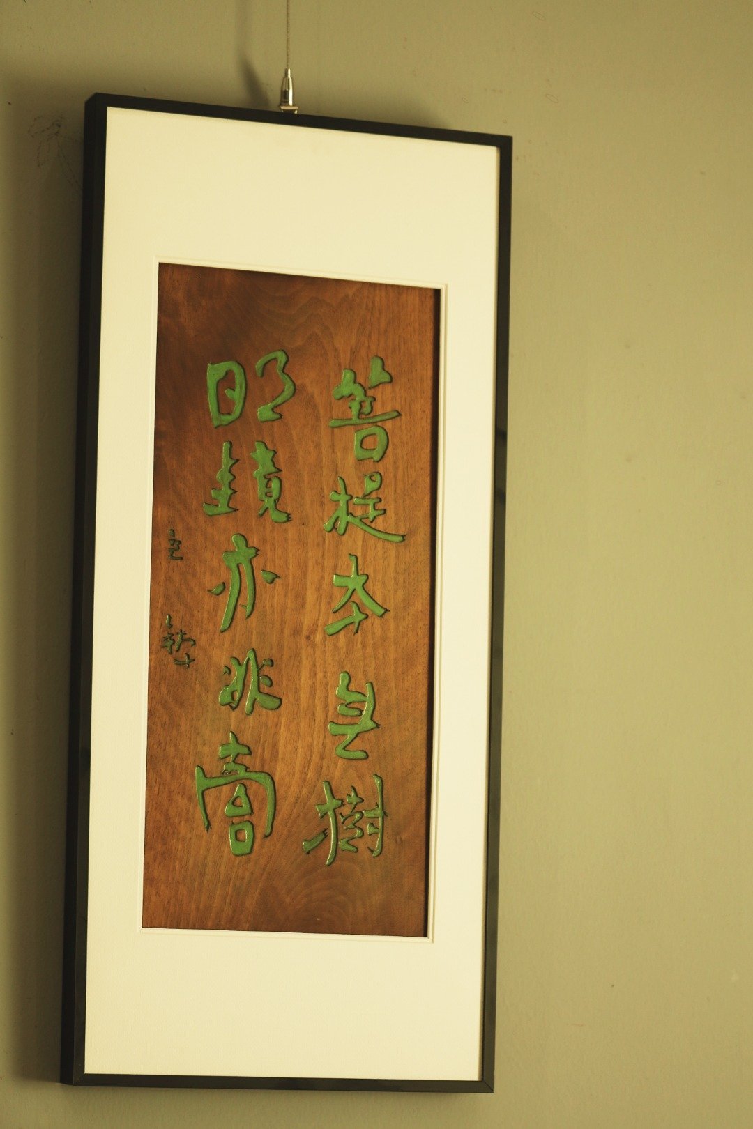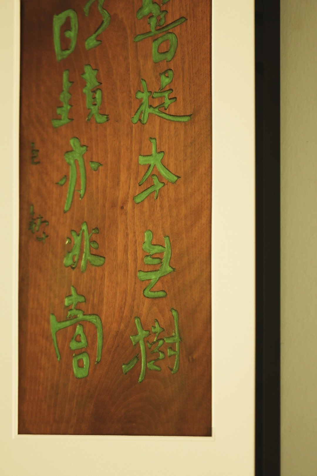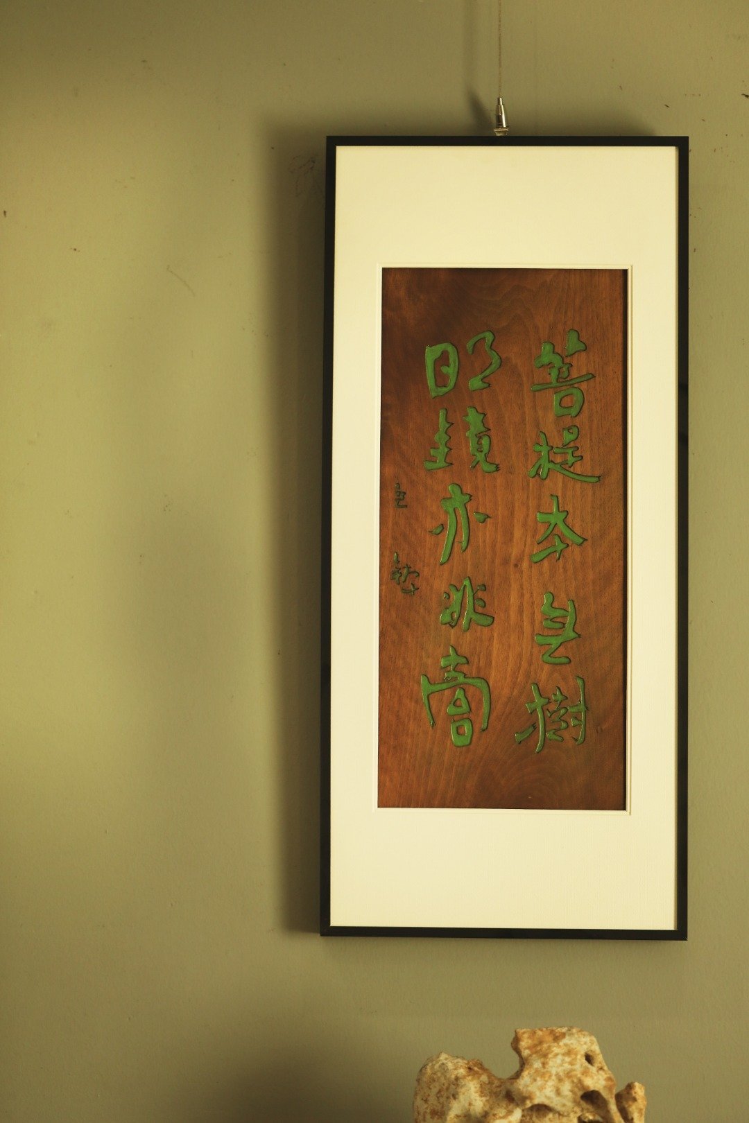雅室清居 | 挂屏题识:“菩提本无树,明镜亦非台。。”老楠木原皮壳料手工刻画,大
