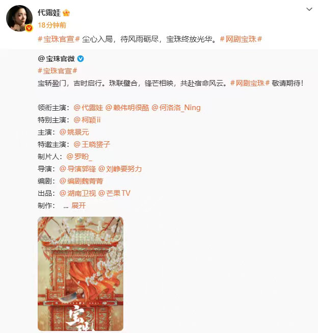 代露娃首部大女主剧代露娃赖伟明何洛洛宝珠领衔主演 代露娃首部大女主剧,代露娃赖伟明何洛洛宝珠领衔主演,恭喜官宣,期待住各位合作的故事正式见面,开机大吉啊~