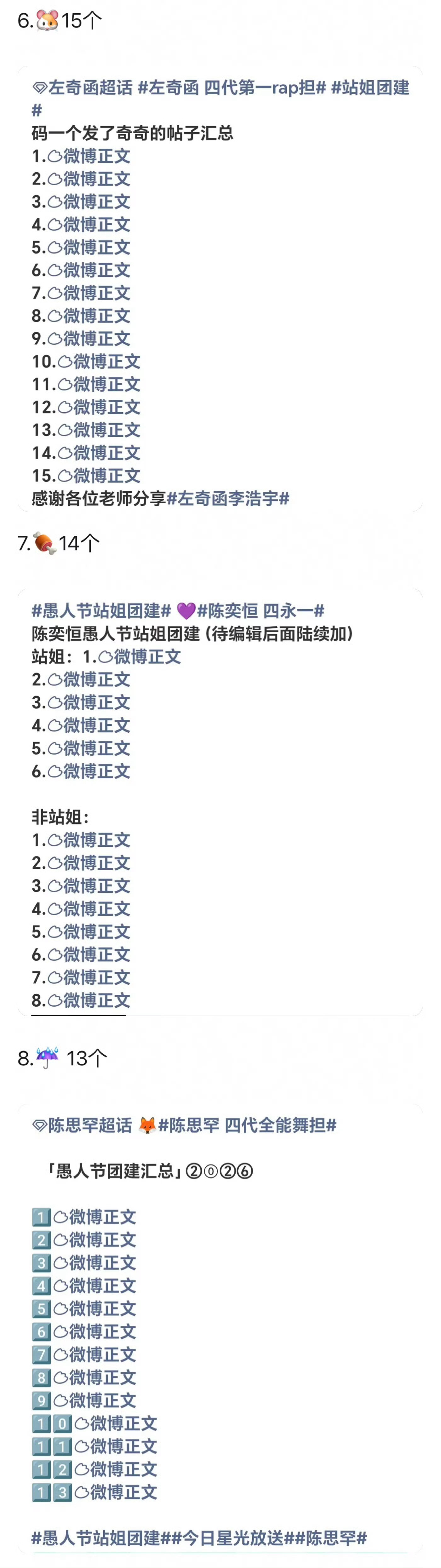 四代愚人节站姐团建拉表王橹杰101 陈浚铭92 张函瑞77 张桂源32 杨博文20 左奇函15陈奕恒14 陈思罕13