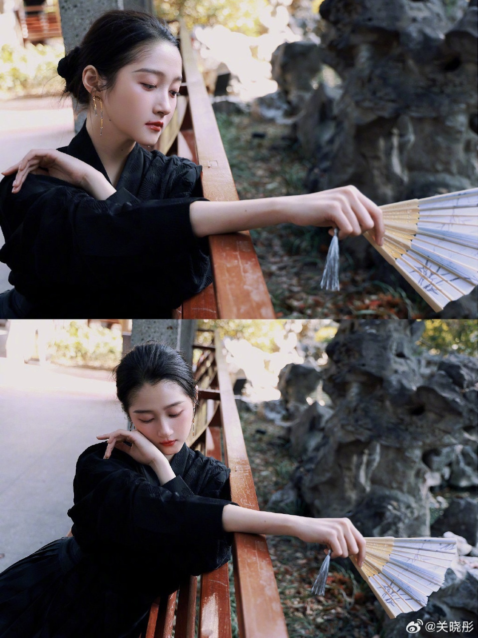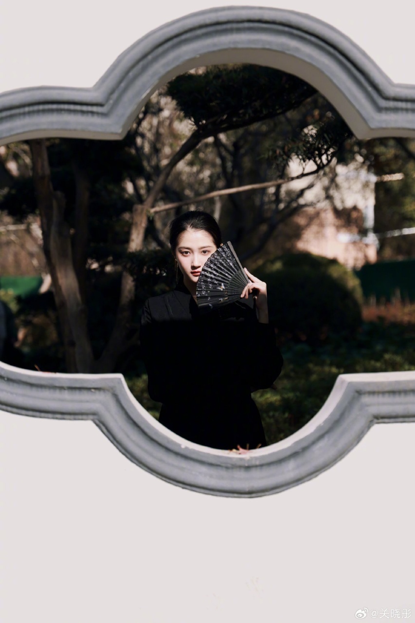 关晓彤关晓彤新中式黑色马面裙关晓彤盘发马面裙造型!好干练 关晓彤新中式折扇马面