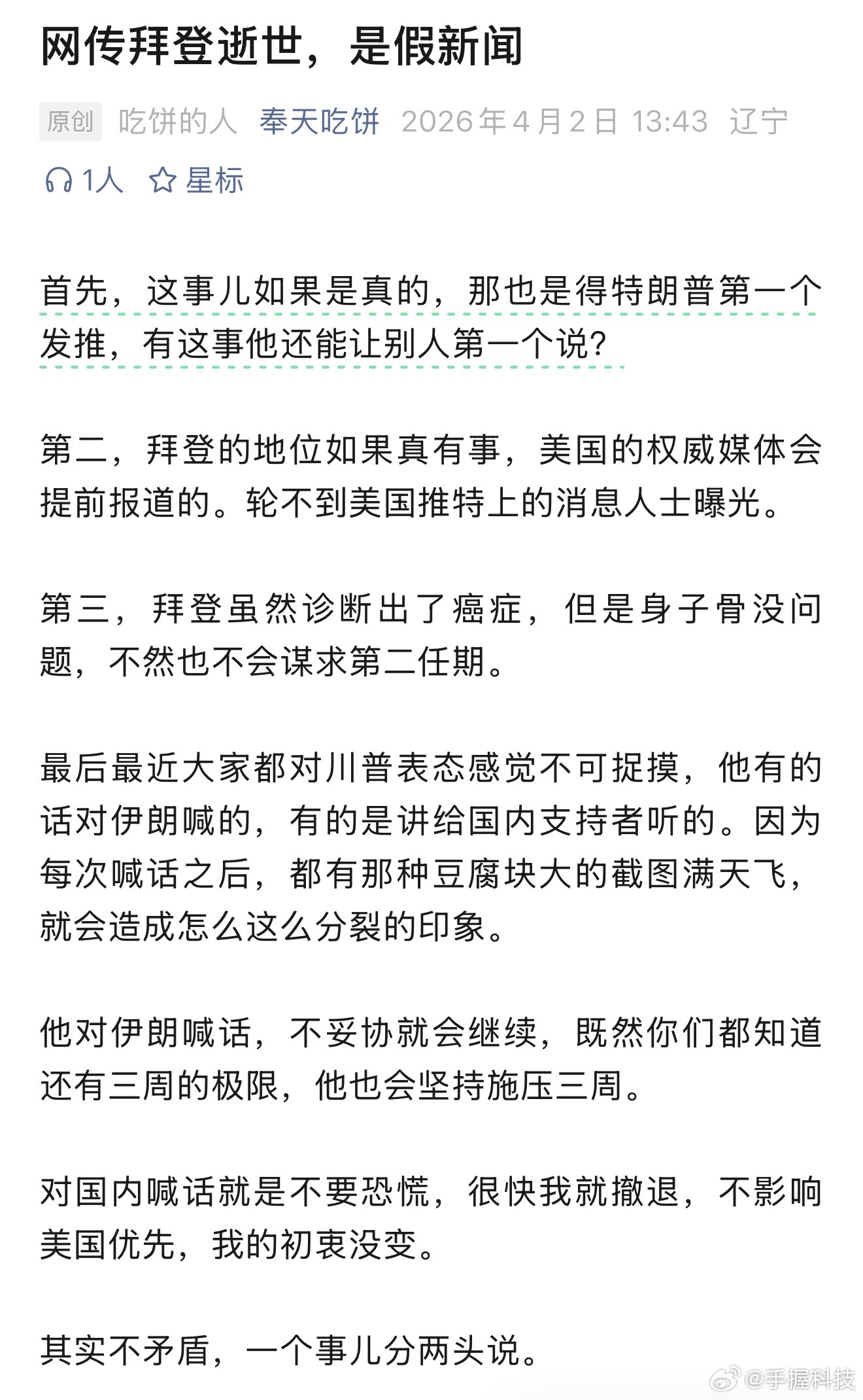 拜登第一反应也是假新闻,图2发这个谣言的人都在嘲讽相信这个消息的人了….