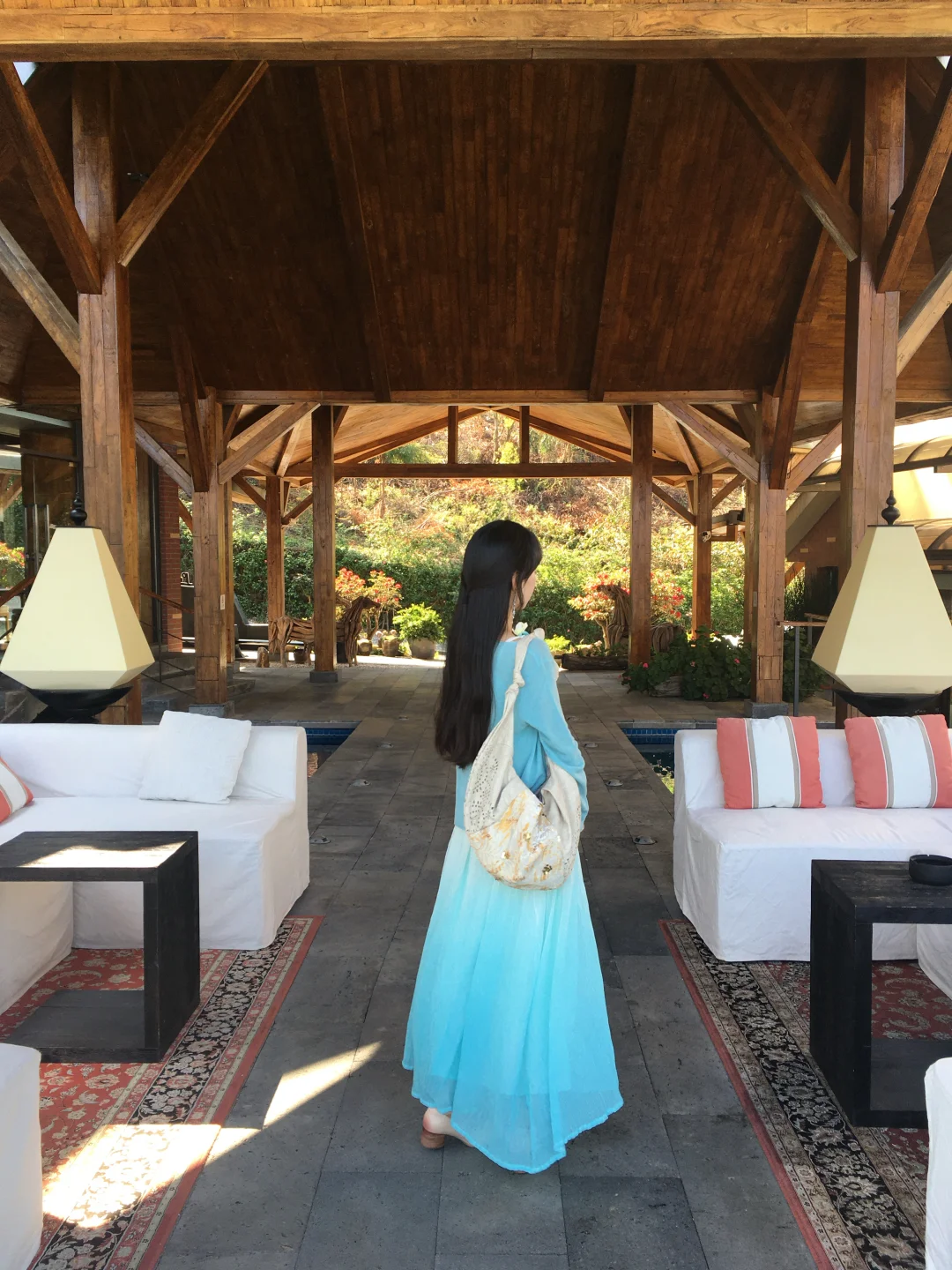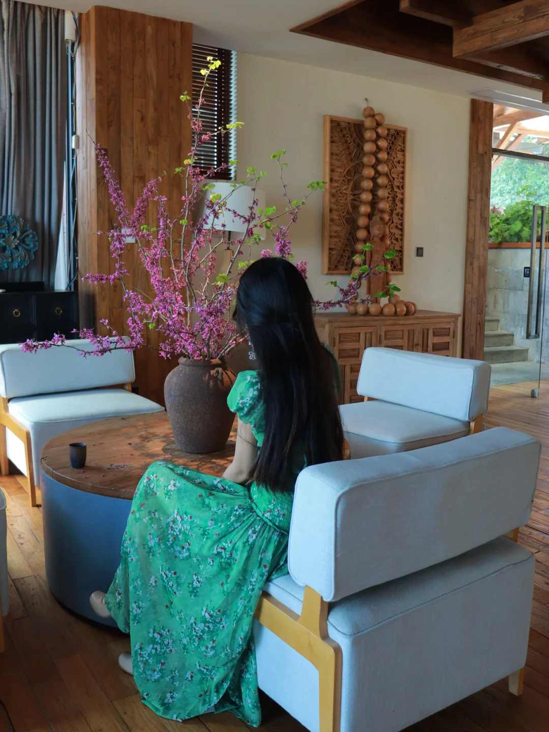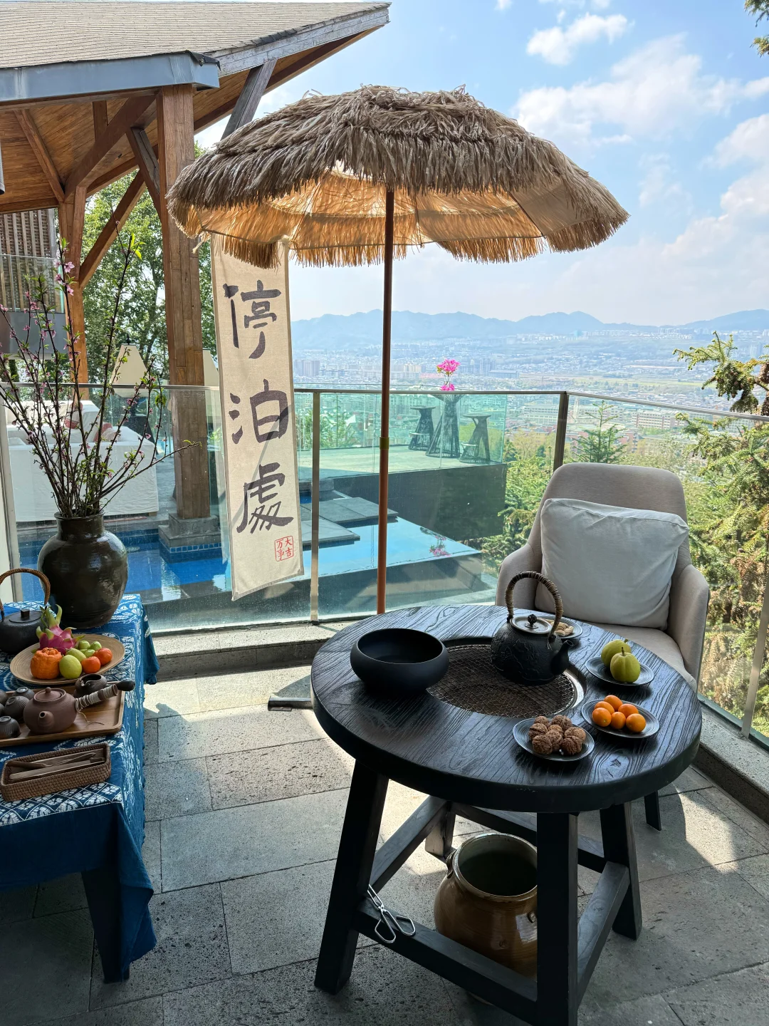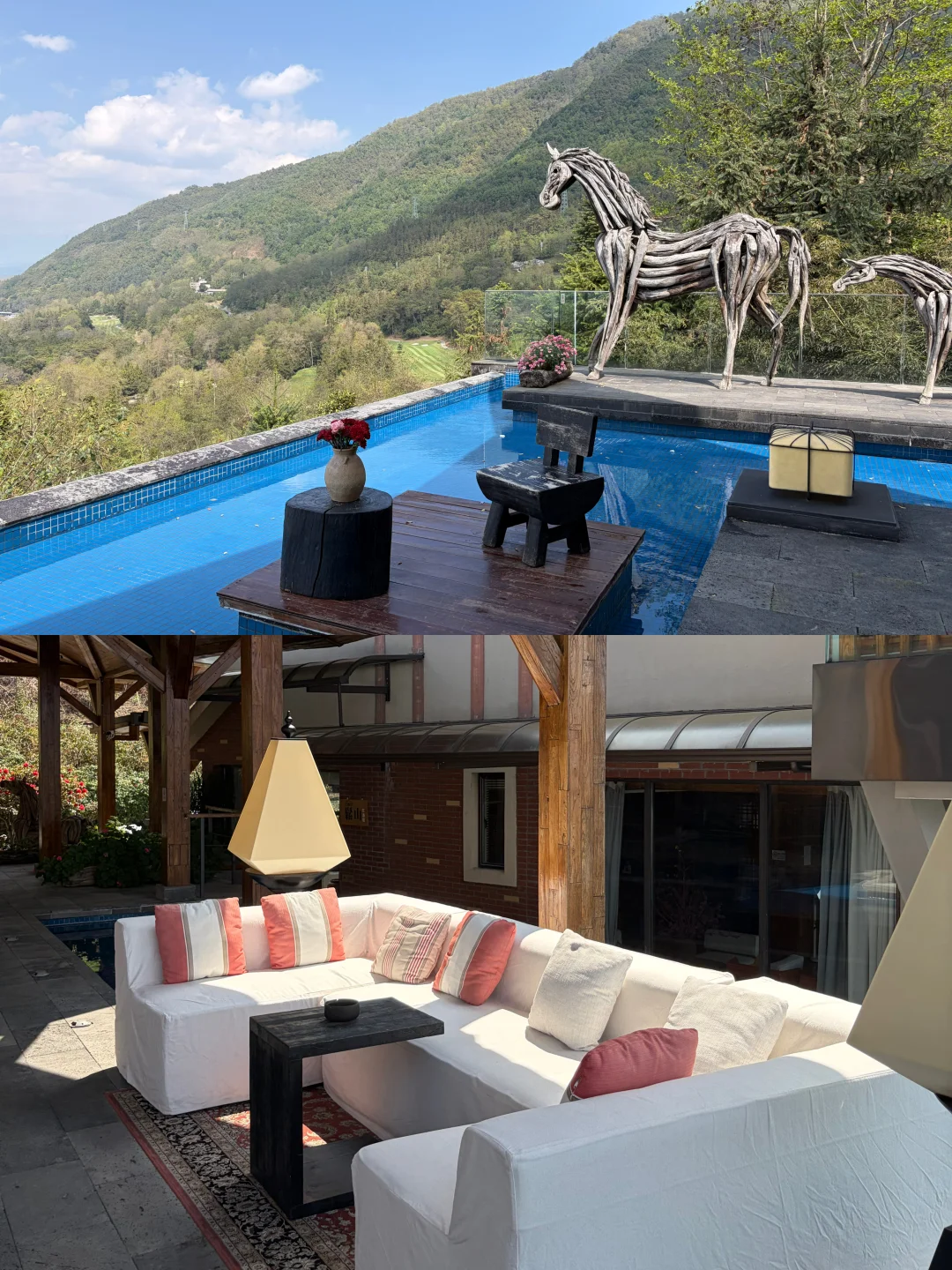 房间自带露台私汤温泉 傍晚泡着温泉看夕阳把云层染成柠檬色 远眺是火山群,俯瞰是腾冲城 周边青山绿树环绕 门口连廊栽种了一路的鲜花 随手一拍都很出片~ 公区超大 而且陈列的艺术展品也很有格调!