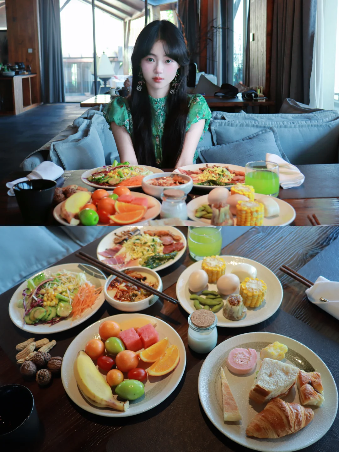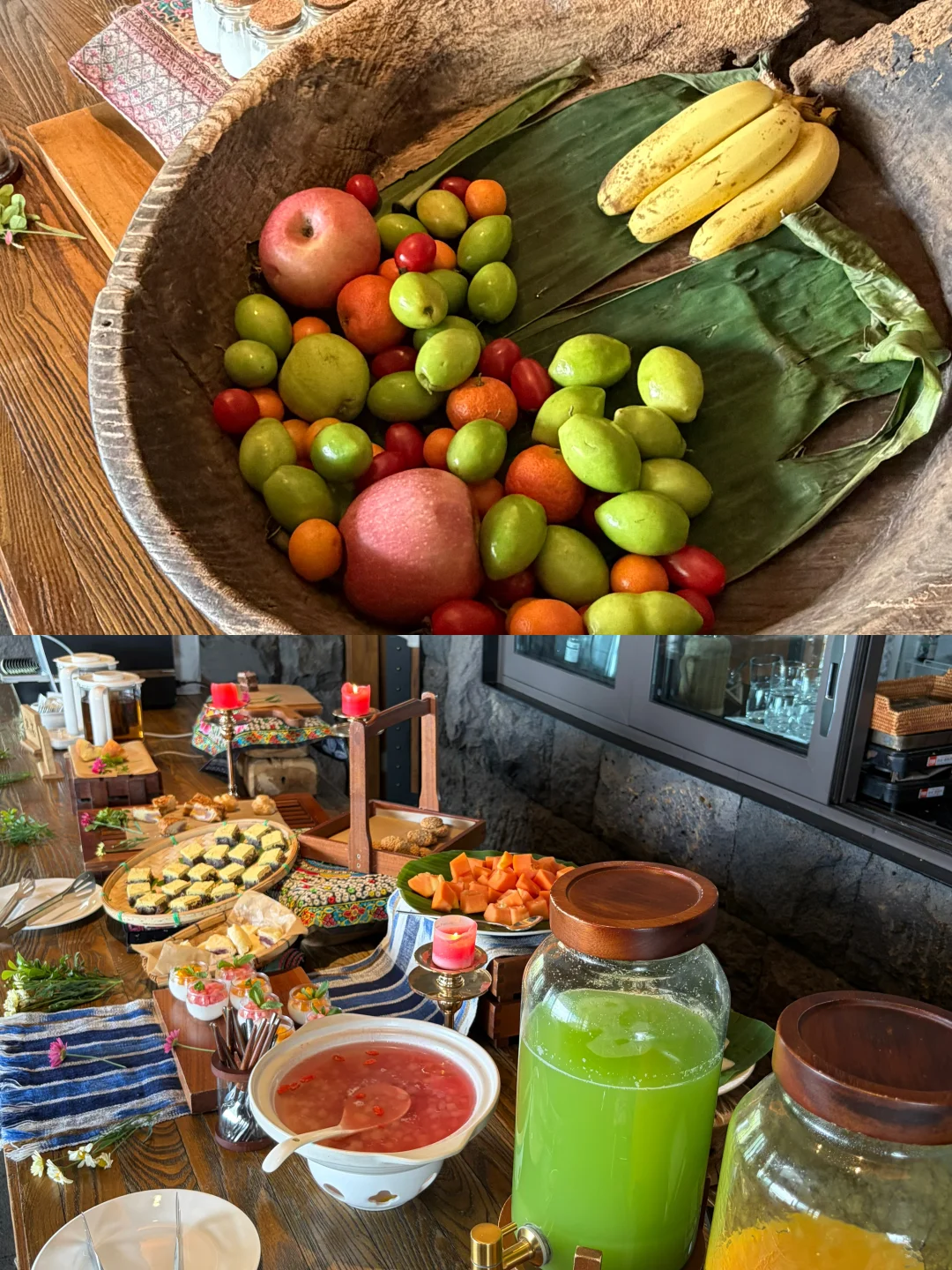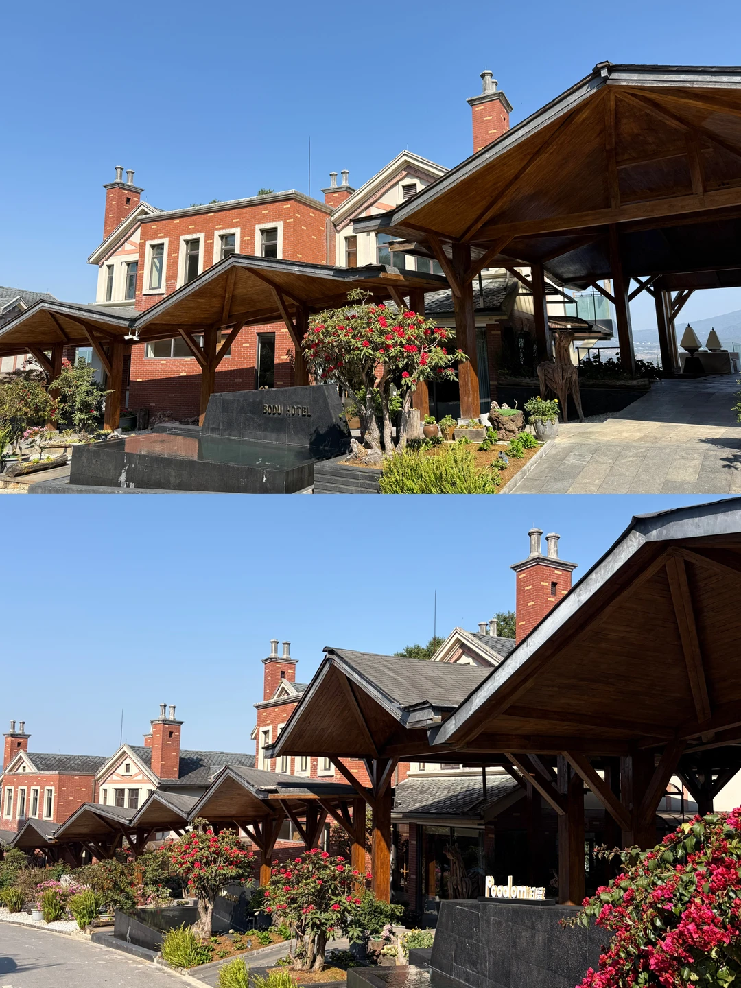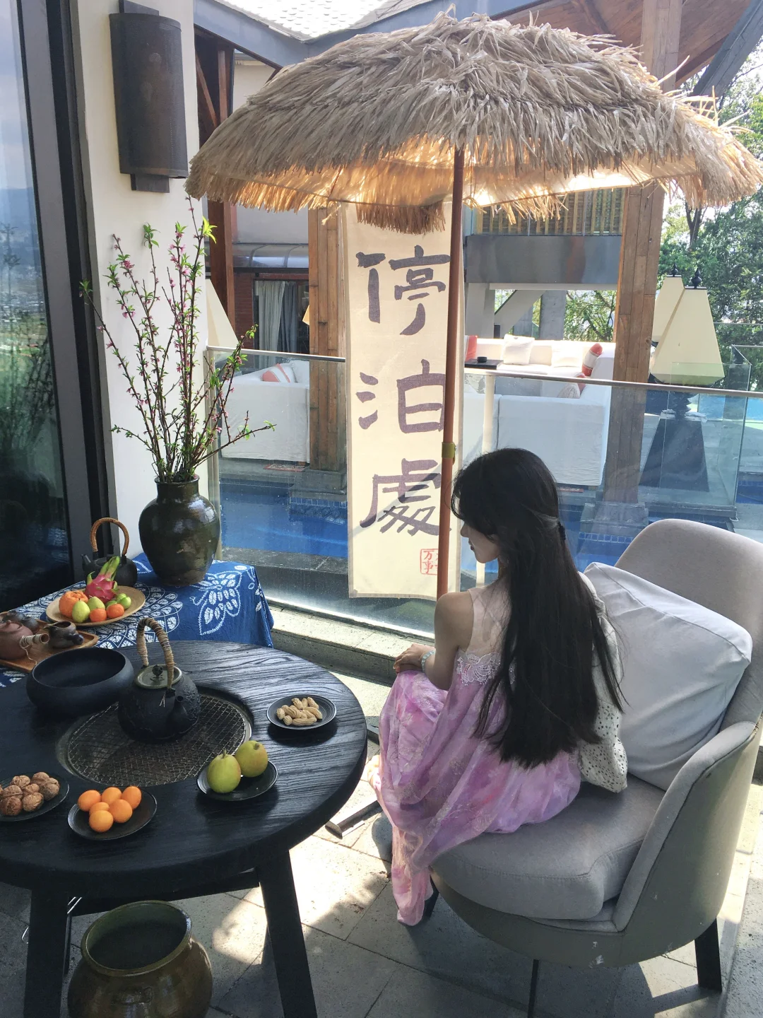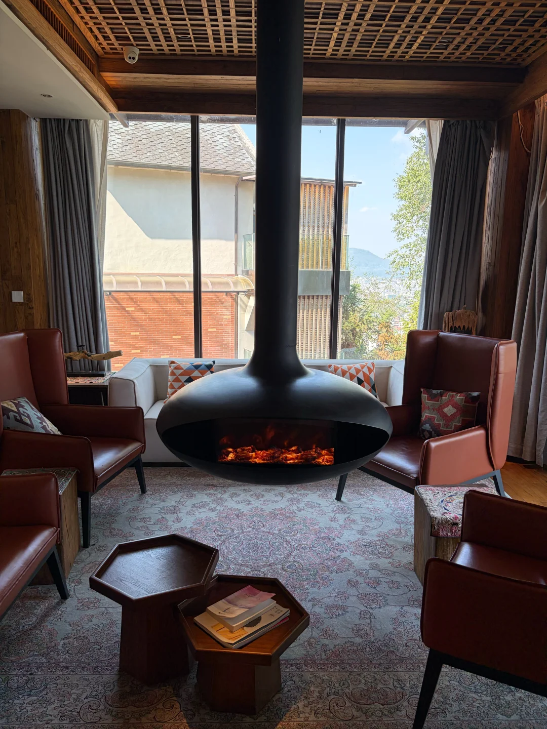 房间自带露台私汤温泉 傍晚泡着温泉看夕阳把云层染成柠檬色 远眺是火山群,俯瞰是腾冲城 周边青山绿树环绕 门口连廊栽种了一路的鲜花 随手一拍都很出片~ 公区超大 而且陈列的艺术展品也很有格调!