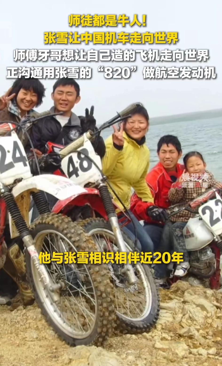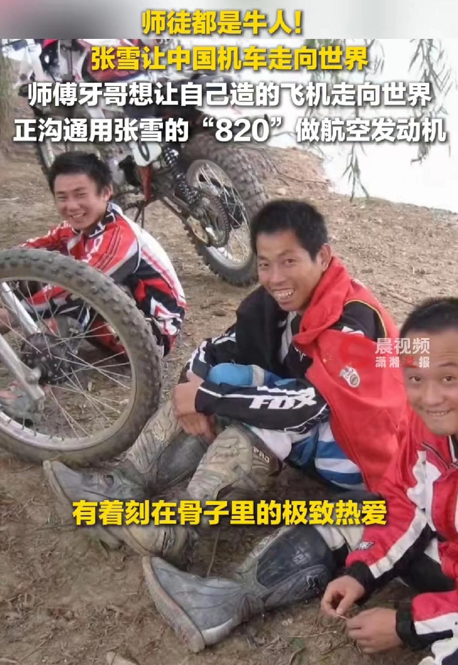 张雪的师傅牙哥也真牛啊!他正在造飞机,他的梦想是让中国制造的飞机走向世界。牙哥说他的飞机航空发动机用的就是张雪的“820”来做的。师徒两个人,一个造陆地的,一个造天空的。牙哥要是成功了,又是一个创造神话的故事。他们两个相识20多年了,亦师亦友。 最牛的地方就是他们两个永远没有放弃自己年轻时的梦想,一直在实现自己梦想的路上,这一点是太难得了。 因为我们每个人都年轻过,每个人都有过梦想,又有多少人坚持下来了!我们回首一下,还记得当初的那个梦想吗?因为什么没有坚持下去呢?想想真令人感慨,怪不得大家那么喜欢张雪。他是那个一心纯粹的去实现梦想,把梦想实现的淋漓尽致的人。