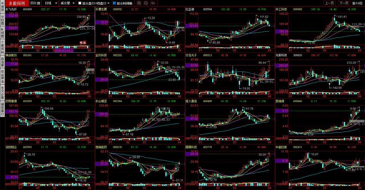 多头排列的大成交个股并不多,赣锋,轮船,光纤,药明,国晟,神剑。