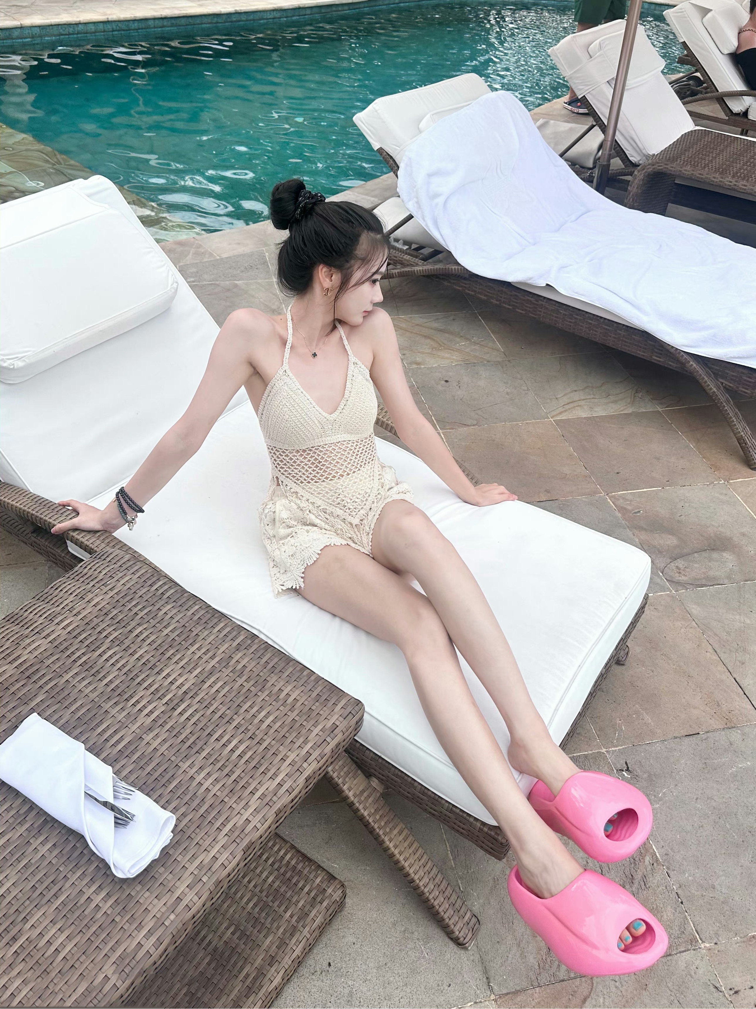 张萌身材太辣了,粉泳装也太好看了!