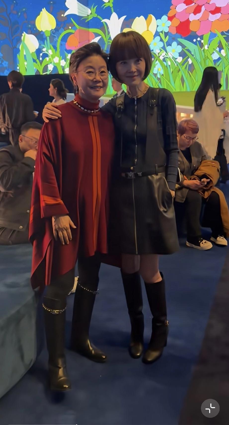 4月2日,鲁豫在北京三里屯参加爱马仕开业活动后又出席了晚宴,太瘦了,与老太太合影
