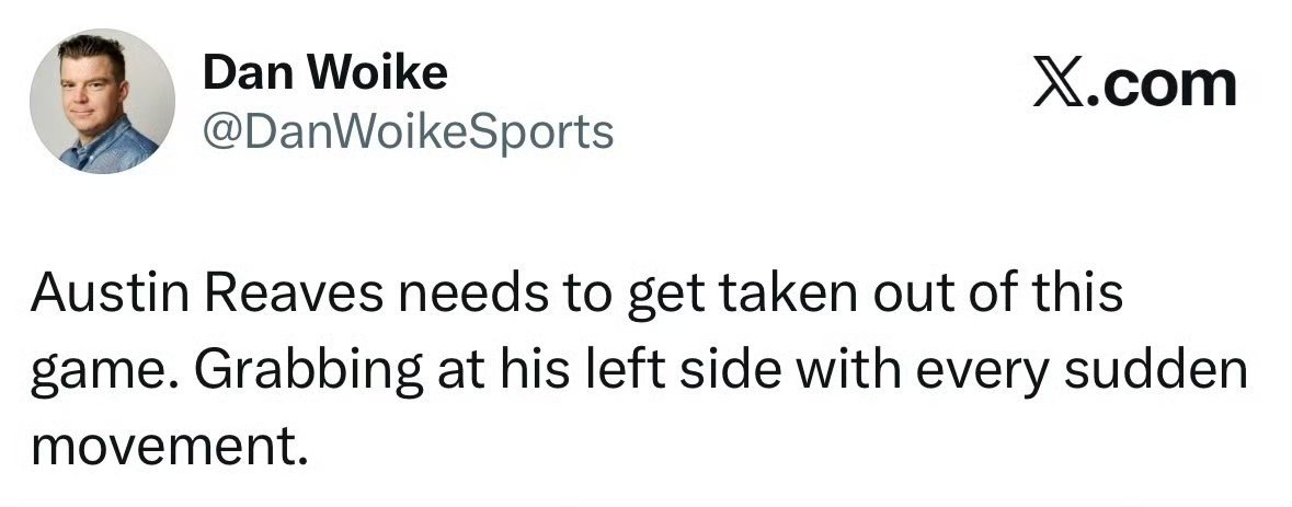 湖人记者:里夫斯必须被换下了。每一次突然变向,他都在捂着自己的左侧身体。湖人vs雷霆