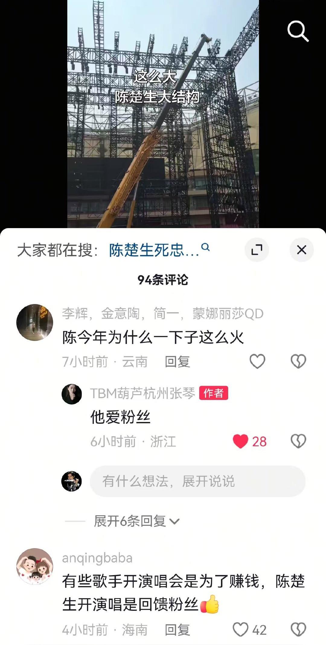 陈楚生在上海给粉丝们盖了一座楼! 他真的很爱他的花生们。 他真的很热爱音乐这个舞台。 为了他的音乐梦想、为了他的粉丝们,他把演唱会赚到的钱都花在舞台上和粉丝身上。 看看这么多工人一起盖楼,看看如此巨大的擎天铁塔,看看几乎就连黑粉都无语的时时….这就是陈楚生,一个纯粹的音乐人,他在娱乐圈绝对是“出污泥而不染、濯清涟而不妖”! 他值得被更多的人喜欢和爱。