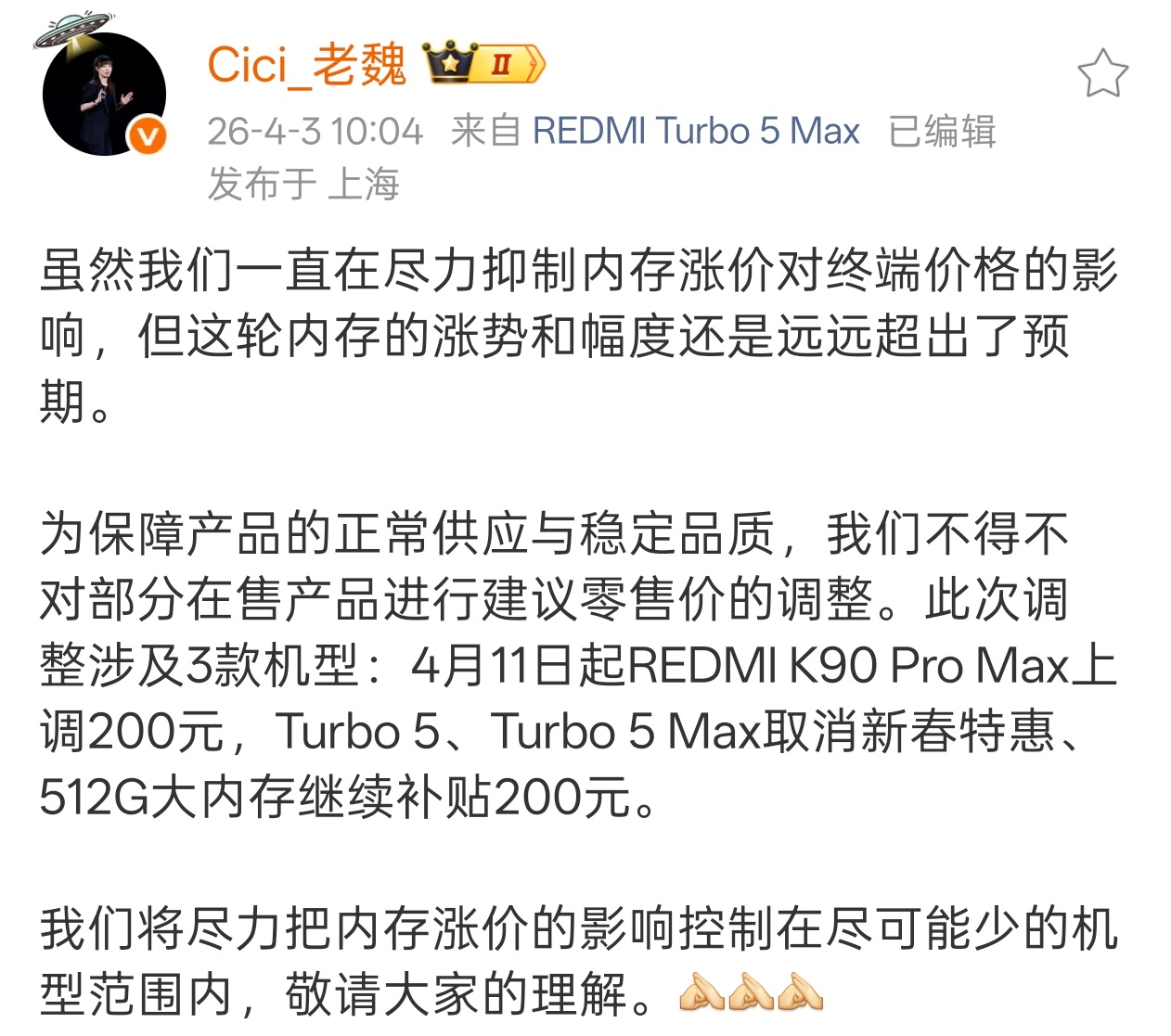 小米调价小米也挡不住内存的高价了,对部分机型做了涨价和恢复原价的处理,现在几个头部大厂大部分都涨价了,大家还是早买早享受吧