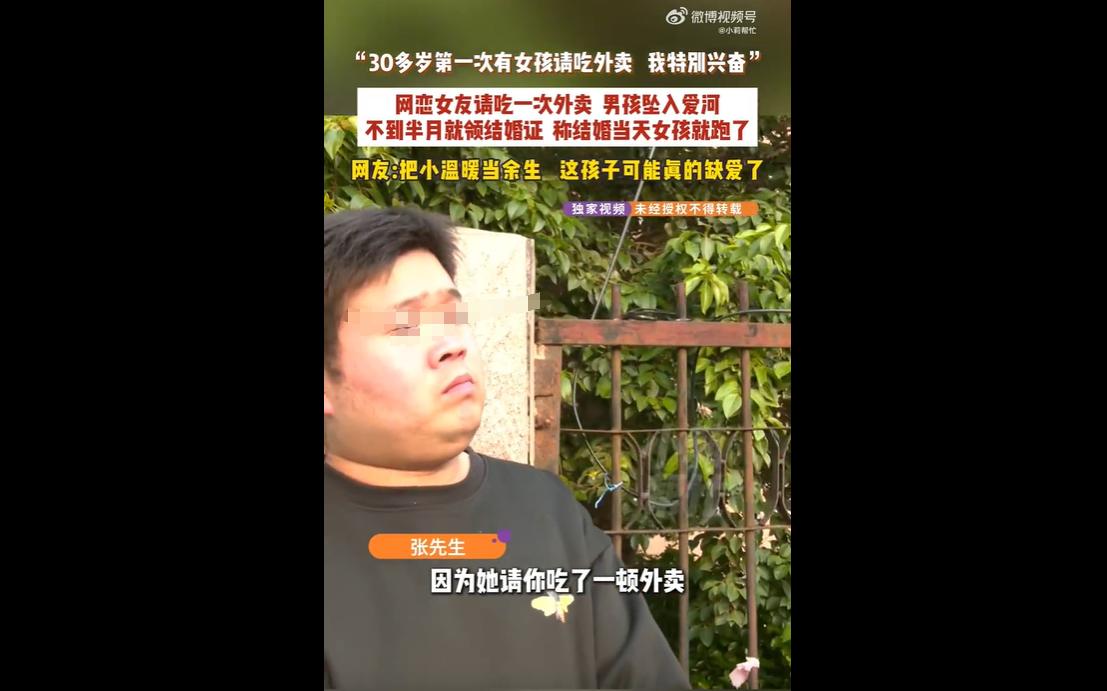 河南永城张先生通过微信摇一摇结识一女孩,因女孩请他吃一顿外卖深受感动,两人迅速发展,3天见家长、15天领证,张先生累计花费彩礼及三金等共34.5万。 不料结婚当天下午,新娘借口家中有事离开,几天后张先生收到新娘与其他男子的不雅照,新娘称照片是旧照、未回家是因工作,张先生质疑其不忠诚,已提起离婚诉讼并要求退钱,新娘则表示想继续过日子。 我们能理解张先生的感动与委屈。 对他而言,一顿外卖或许不止是一顿简单的餐食,更是从未有过的被重视与温暖,这份稀缺的善意,让他快速放下防备,对这段网恋产生了强烈的好感与信任。 不可否认,这场风波的根源,离不开双方的仓促与冲动。 张先生因一顿外卖的感动,便忽视了婚姻的严肃性,未充分了解对方的人品、性格,就仓促步入婚姻,这份冲动,为后续的矛盾埋下了隐患;而新娘的行为,也让人难以认同,结婚当天失联、发送不雅照,即便有“旧照”“工作忙”的解释,也难以打消疑虑,未能做到婚姻中最基本的忠诚与坦诚,也辜负了张先生的信任与付出。 这起事件,也让我们重新审视网恋与闪婚的风险。 当下,网恋成为很多人结识伴侣的方式,但虚拟世界的交往,往往难以全面了解对方的真实面貌,若仅凭一时的好感与感动就仓促闪婚,很容易因认知偏差、了解不足引发矛盾。 婚姻从来不是一时的冲动与感动,而是长久的陪伴与责任,需要双方充分了解、彼此认可,才能携手走下去,仅凭短暂相处就决定终身,往往得不偿失。 小伙网恋因一顿外卖15天闪婚