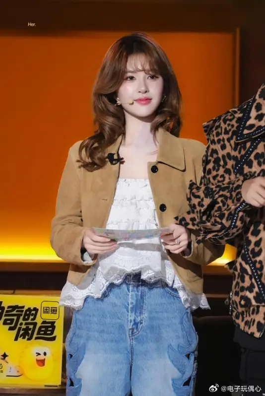 赵露思增肥后大变样!穿棕色短外套+牛仔裤好高级,差点认不出!