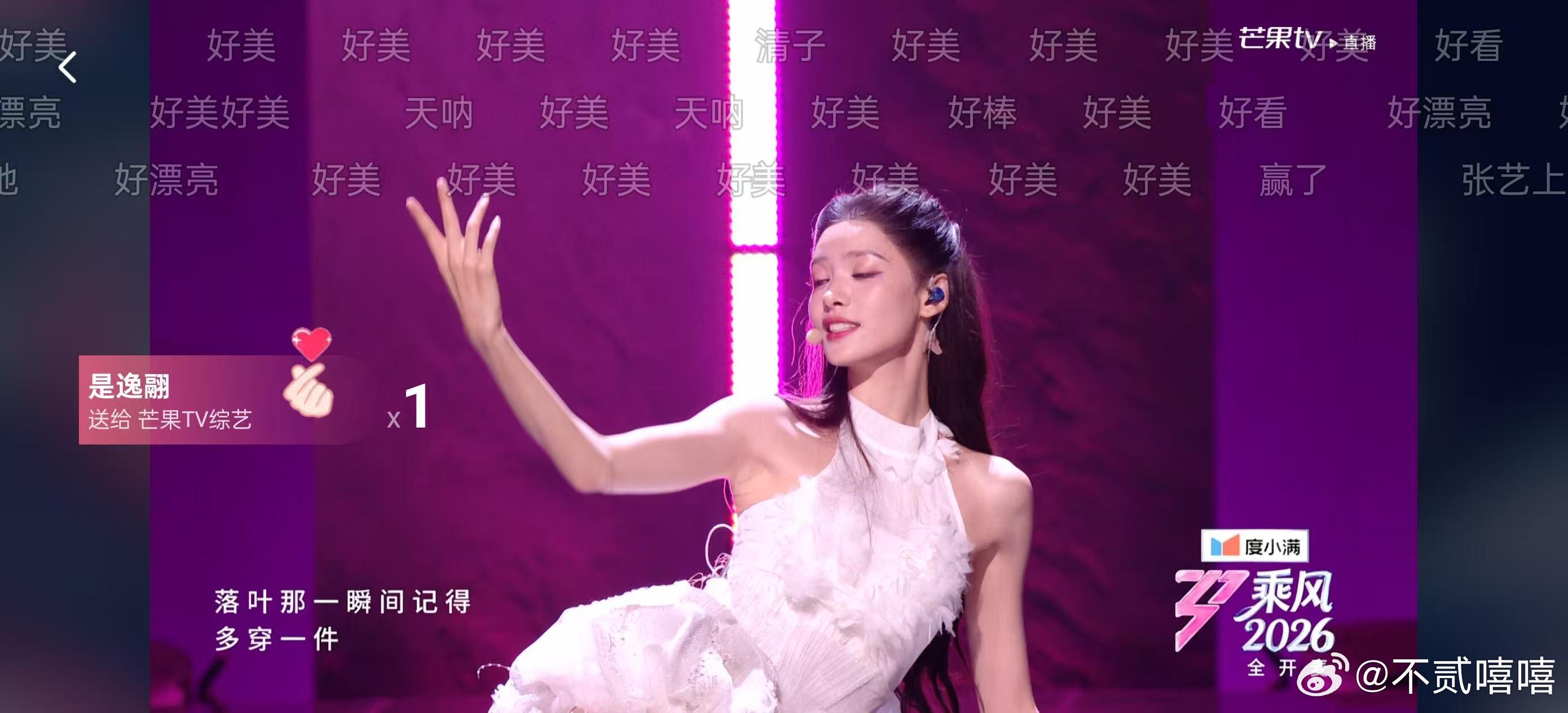 张艺上跳的很漂亮,唱的有点跑调吧?垫音还很大声,让我听不清,偶尔听到的几个音都是跑的。但是身形和舞蹈都太漂亮了,有的人站在那就是会加分,有点好奇,她是舞蹈生吗?期待下一次唱歌的进步!乘风2026