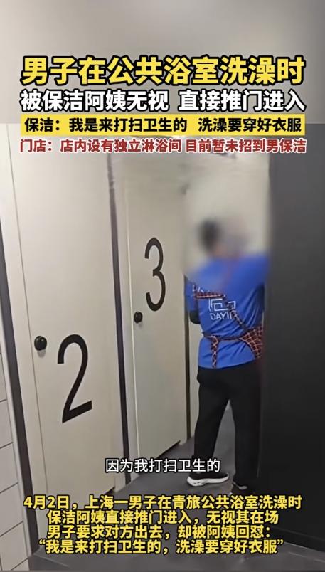 离了大谱!上海,一男子入住了一家青旅,没成想,在男盥洗室内淋浴间洗澡时,突然一名女保洁走进来打扫卫生,男子连忙质问对方,大姐不但没道歉,反而表示:“洗澡你必须穿衣服,这是公共卫生间。” 那天男子从外面玩回来,浑身都是汗,黏糊糊的特别难受,回到青旅后,他没多想径直走进了男盥洗室的淋浴间,脱了衣服就打开热水冲澡,想着好好洗去一身疲惫,可他万万没想到,一场离谱的闹剧正在等着他。 他正洗得起劲淋浴间的门突然被人推开了,没有敲门没有任何提醒,一个穿着工作服、拎着拖把的女保洁,就这么径直走了进来,二话不说就开始在淋浴间门口收拾卫生,完全没有要回避的意思。 男子当场就懵了,浑身僵在原地,又尴尬又生气,连忙质问女保洁,可让他更没想到的是,女保洁不仅没有丝毫歉意,反而一脸理直气壮,还反过来指责他,说洗澡必须穿衣服,这里是公共卫生间,不能光着身子洗澡。 男子当时又气又无奈,光着身子站在淋浴间里,热水哗哗地往下流,心里满是疑惑和愤怒,洗澡本来就是要脱衣服的,要是穿衣服洗澡,那到底是洗澡还是蒸桑拿?更何况,这里是男盥洗室,门上明晃晃写着“男”字,女保洁怎么会毫无顾忌地闯进来,还要指责他不穿衣服? 那天晚上男子越想越不对劲,觉得自己的隐私受到了严重侵犯,再也没法安心住下去,当即就办理了退房手续,然后把自己的这段奇葩经历,详细地发到了社交平台上,本来只是想吐槽一下,没想到帖子很快就炸了。 青旅方面得知消息后,很快就出来回应,可他们的解释却轻描淡写,说店里只有女保洁,平时保洁是不进淋浴间的,还说以后会贴个告示,提醒住客避开保洁打扫的时间,看似体贴周到,实则全是敷衍,根本没抓住问题的关键。 稍微想想就知道,住青旅的人作息都不一样,有人白天洗澡,有人半夜洗澡,谁会天天盯着保洁几点下班、几点打扫,精准卡点洗澡?更关键的是当时淋浴间的门关着,里面还有哗哗的水声,这已经是最明显的“正在使用”的信号,女保洁只要稍微留意一下,只要敲一下门,就不会发生这样的事。 说白了青旅的这个解决方案,根本不是在解决问题,而是在把皮球踢回给住客,潜台词就是,你觉得介意,那是你的事,自己想办法避开,跟我们没关系,大家都能理解青旅想压缩成本、人手紧张,但再怎么省钱,有些底线也不能省,尊重住客的隐私,就是最基本的底线。 男浴室门上的“男”字不是摆设,女保洁有眼睛、有工作服,还有打扫工具,偏偏就少了敲门这个最基本的动作,这不是粗心大意,而是对住客隐私边界的彻底无视,是对住客最基本的不尊重。 帖子下面留言几乎是一边倒地骂青旅,不是大家闲得慌,而是太多人都有住青旅的经历,都清楚那种“几十块钱一晚,凑活住就行”的无奈,但凑活不代表可以连基本的体面和隐私都不要,关起门安安稳稳洗个澡,这是每个住客最起码的权利,怎么到了这家青旅,就成了一种奢望? 这个男子选择把事情捅出来,其实也是说出了很多人的心声,平时遇到这种事,很多人可能会选择沉默,觉得多一事不如少一事,可沉默只会让这种不尊重隐私的行为越来越肆无忌惮。他的吐槽,其实是给所有住客一个出口,也给所有青旅提了个醒,省钱可以但不能省掉基本的尊重,不能无视住客的隐私。