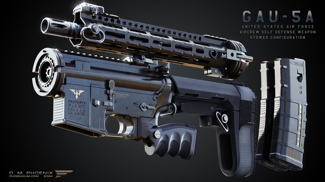被击落的美国空军F-15 飞行员依靠这种随身携带的武器做最后抵抗,同时等待搜救队找到他们。 GAU-5A 机组人员自卫武器 (ASDW) 是一款紧凑型可拆卸 5.56 毫米步枪,专为美国空军飞行员设计,用于在被击中时进行生存和防御,它由美国空军枪械修理厂开发,可安装在 ACES II 弹射座椅中,无需工具即可在 30 秒内组装,并可攻击 200 米内的目标。