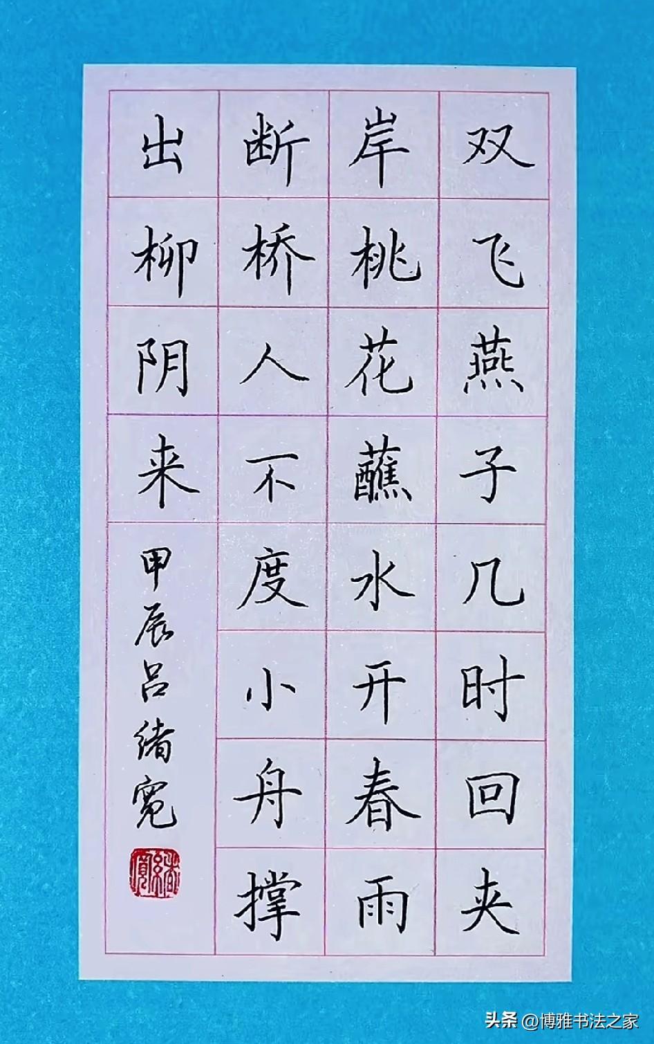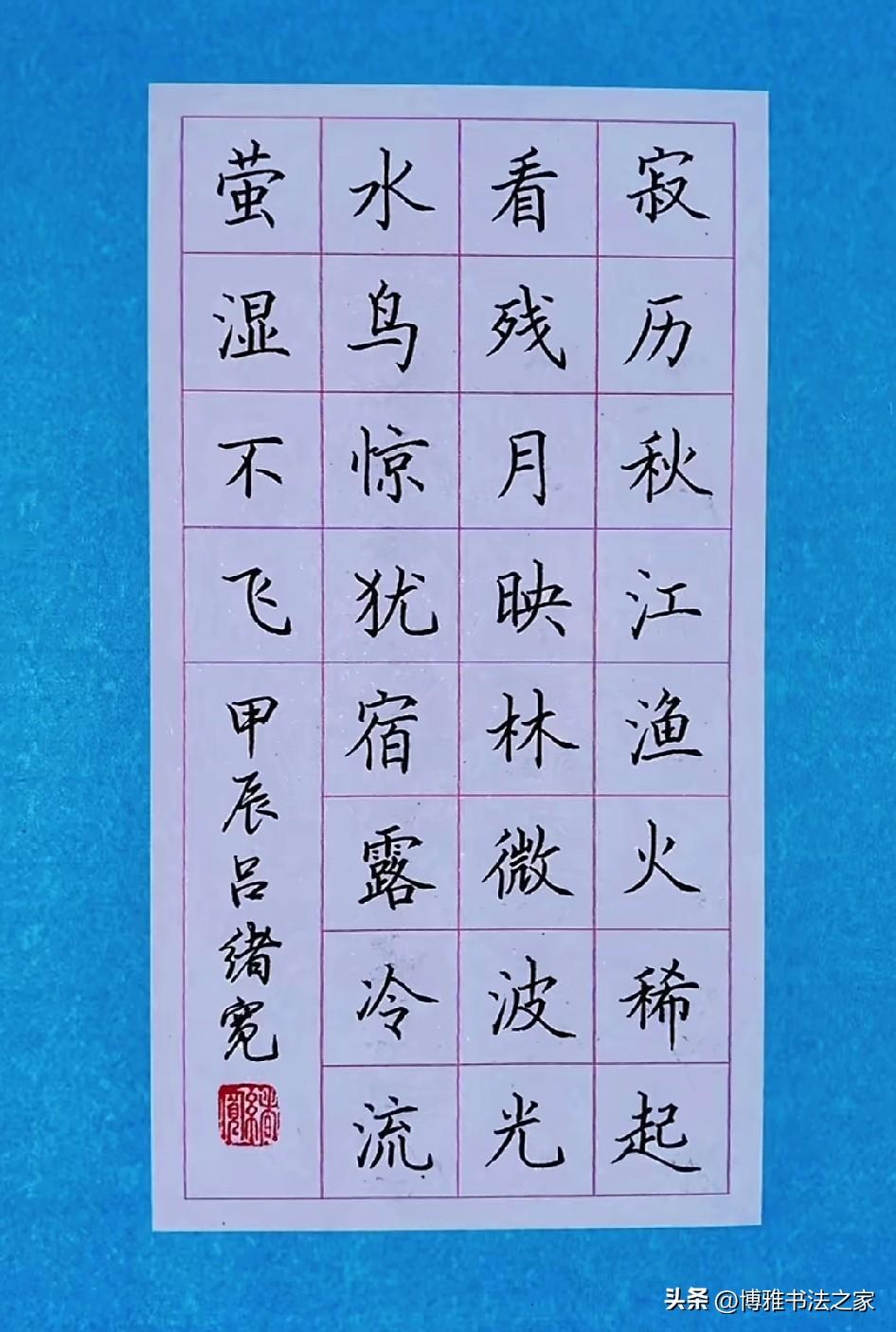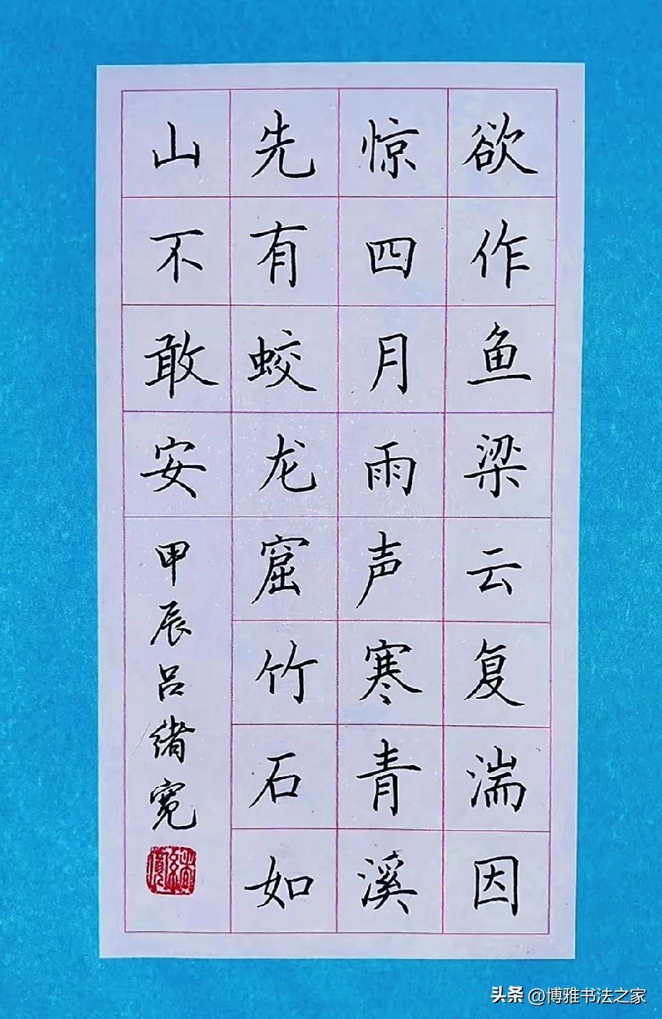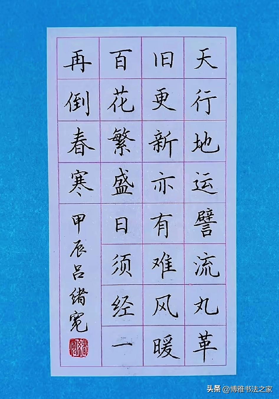 手写硬笔楷体,堪称书法中的经典。我练习楷体时,深切感受到它的严谨与规范。恰似欧阳询的楷书,笔画精巧,结构谨严,书写起来极具力量感。 起初练习楷体,我写得横不平、竖不直,字歪歪扭扭,宛如醉酒之人。后来我从基本笔画练起,单单一个“横”就练了好几天,力求平稳且有起收笔的变化。 练习楷体需要耐心,不可急于求成。每个字都要仔细琢磨结构,比如上下、左右的比例关系。如今,我写楷体愈发得心应手,感觉自己整个人都更沉稳了,这便是楷体的魅力所在。