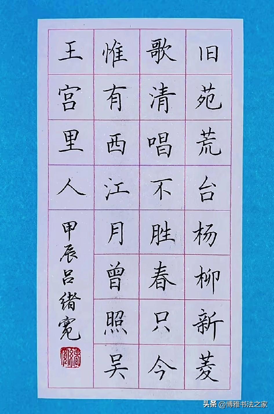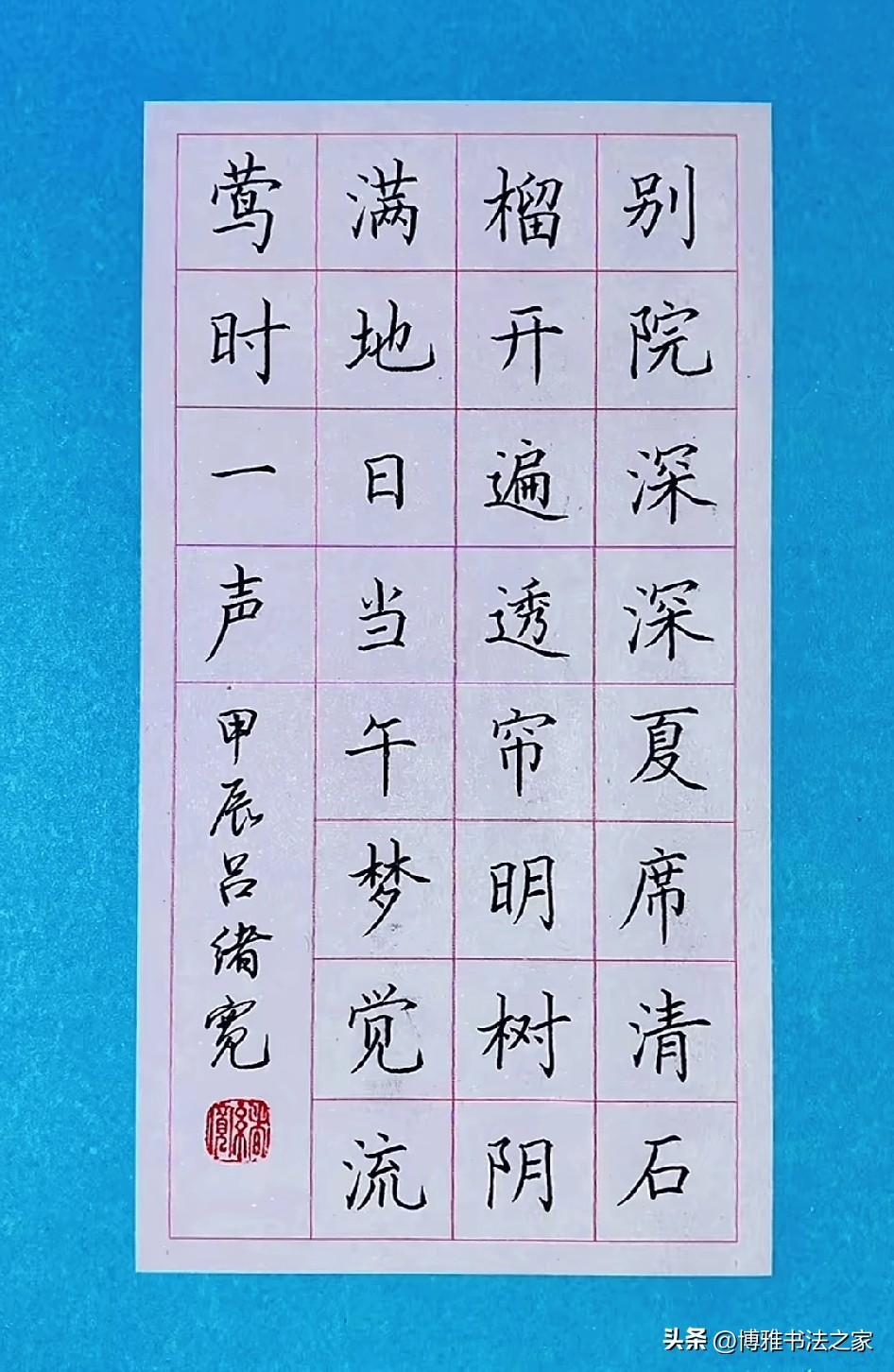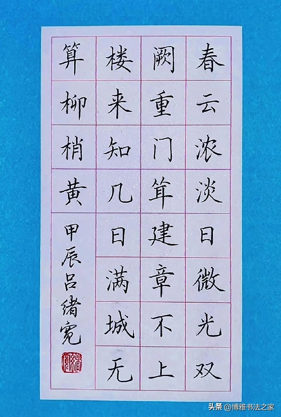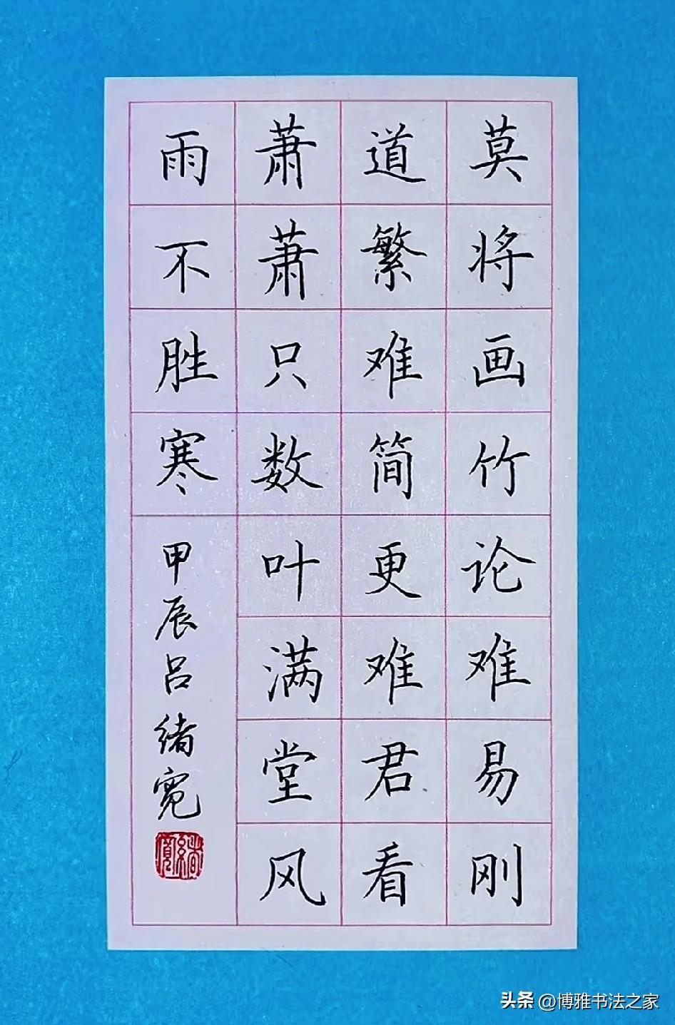 手写硬笔楷体,堪称书法中的经典。我练习楷体时,深切感受到它的严谨与规范。恰似欧阳询的楷书,笔画精巧,结构谨严,书写起来极具力量感。 起初练习楷体,我写得横不平、竖不直,字歪歪扭扭,宛如醉酒之人。后来我从基本笔画练起,单单一个“横”就练了好几天,力求平稳且有起收笔的变化。 练习楷体需要耐心,不可急于求成。每个字都要仔细琢磨结构,比如上下、左右的比例关系。如今,我写楷体愈发得心应手,感觉自己整个人都更沉稳了,这便是楷体的魅力所在。