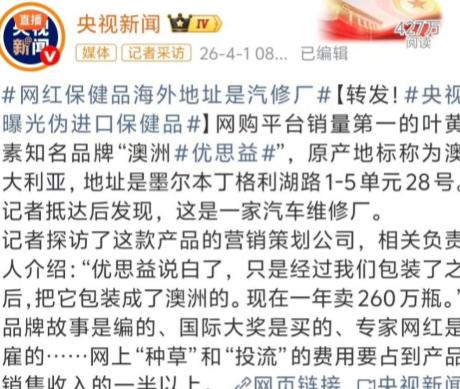 董宇辉,翻车了! 4月2日,一向低调的董宇辉,突然冲上了热搜,这次不是啥好事,而是央视曝光了“澳洲优思益”,实为国产贴牌伪进口品牌后,董宇辉及其直播间“与辉同行”被推上风口浪尖。 说白了,这就是一场精心包装的伪进口骗局,董宇辉不过是被品牌方和行业乱象架在火上烤的替罪羊之一,却要承受大部分网友的谩骂和指责。 4月2日这波热搜,来得又急又猛,平时靠诗词和真诚圈粉的董宇辉,一夜之间被推上舆论的对立面,评论区里吵得不可开交,有人骂他割韭菜,有人替他喊冤,场面一度失控。 央视的曝光可以说是一记惊雷,揭开了“澳洲优思益”的遮羞布——号称澳洲原装进口,包装上全是英文,标注的海外地址竟是澳大利亚一家汽车维修站,压根没有什么保健品工厂。 说穿了就是国内小作坊代工,花几万块买个国际大奖、雇个外国专家背书,就摇身一变成了“洋品牌”,成本据说才二十块左右,直播间售价却敢卖到两百多、三百多,溢价翻了十几倍。 这事一出来,骂董宇辉的人铺天盖地,但也有不少网友站出来打抱不平,直呼终于有人说句公道话了,那些追着董宇辉骂的,要么是根本不懂直播选品的门道,要么就是故意带节奏博眼球。 我就纳闷了,品牌造假、监管有盲区,凭什么让主播背全锅?直播间能做的,无非就是核对品牌方给的资质文件,人家又没有千里眼,能看穿海外地址是汽修厂,能查出产品是国内贴牌吗? 真要追责,也得先找那些弄虚作假的品牌方,再找监管部门,别一有事就拿主播当情绪垃圾桶,太不公平了。 不过话说回来,我感觉直播这个行业,早就良莠不齐到离谱了,不管是董宇辉这样的顶流大V,还是刚起步的小白主播,甚至是那些明星、演员跨界带货,说穿了玩的套路都一样,所谓的“严格把控产品质量”,大多都是忽悠消费者的噱头。 你看那些明星带货,哪一个能长久?高光时刻也就那么一段时间,热度一过,要么翻车要么隐退,根本经不起时间的考验,更经不起良心的拷问。 最让人无奈的是,直播大V们靠着这些套路赚得盆满钵满,据说董宇辉团队单靠这款优思益就入账几百万,可最后为这些虚假宣传买单的,还是普通消费者,花了大价钱买的“进口保健品”,竟是国产贴牌的普通食品,消费者何其怨?又何愿?难道这个行业真的就管不好吗? 至于董宇辉,我猜他和他的团队明显是被骗了,你说他能知道这是假的还故意卖吗?反正我是不信的。他现在的热度和身价,差这一个产品的佣金吗?根本不差。 而且事发后,“与辉同行”也很快表态,能为消费者先行垫付全额退款,反观有些明星主播,要么拖延要么推诿,对比之下,已经算是有担当了,毕竟按照相关规定,直播间只要核验了品牌方提供的资质,就已经履行了基本义务,真要深究,平台和监管部门的责任也跑不了。 最后必须说明,以上全是我个人看法,不代表任何立场。这场翻车事件,到底是董宇辉团队疏忽,还是品牌方恶意欺骗,还有待监管部门的进一步调查。你们觉得,董宇辉该为这场伪进口骗局负责吗?评论区留下你们的看法。