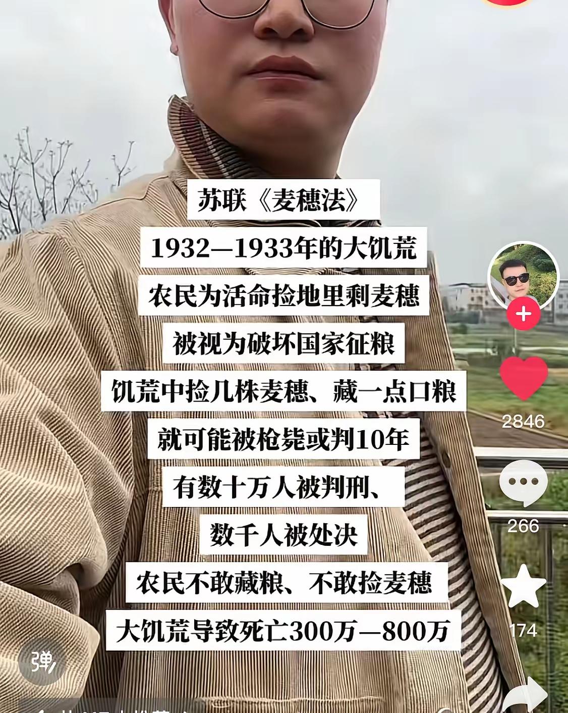 1932年大饥荒肆虐,乌克兰、北高加索等地饿殍遍野,农民为活命,弯腰捡拾收割后遗落的几株麦穗,竟依照《麦穗法》被定为“盗窃国家财产”,轻则十年苦役,重则当场枪决。国家不赈灾,反夺命;百姓不偷盗,只求生。 这哪是什么法律,这分明是把枪口对准了自家田里的老百姓。 1932年8月7日,苏联最高苏维埃颁布了这项法令,全称叫《保护社会主义财产法》。 这个法令规定,集体农庄和合作社的所有财产,包括田里还没收完的庄稼,全算国家财产。盗窃这些财产,最低判十年苦役,没收全部家产,情节严重直接枪决。 斯大林7月25日就亲自写信提出要出台这么个东西,说要“严惩盗窃集体农庄和合作社财产的犯罪行为”。不到半个月,法令就落地了。老百姓管它叫“五穗法”——因为传说偷五束麦穗就够枪决的标准。 可实际上哪需要五束?波尔塔瓦州的集体农庄记录本写得清清楚楚,1932年12月,一个月内就有47名农妇因为捡拾田里掉落的麦粒被处决,最小的玛丽亚才16岁。 她们手里攥着的是什么?是几颗从土里捡起来的麦粒。就因为这几颗麦粒,一个16岁的姑娘被枪毙了。这不是法律,这是屠杀。 法令通过到1933年1月,短短五个月,7.9万名农民被逮捕,4880人被判死刑。这些人里绝大多数不是什么“盗窃犯”,就是饿急了的老百姓,弯腰在收割后的地里捡几根被遗漏的麦穗。 1932年苏联粮食预期产量是9070万吨,实际只收了5500万到6000万吨,征粮数量从2650万吨暴跌到1850万吨。缺口这么大,政府不是想办法赈灾,反而拿刀逼着农民交出最后一口粮。 更讽刺的是,1932年12月27日,苏联秘密颁布身份证法,禁止农民离开居住地。逃荒?没门。国家政治保安总局在火车站架起机枪,仅1933年3月就拦截了21.95万逃荒者。 那边运粮船挂着的横幅写着“五年计划粮食献给世界无产阶级”,这边码头上的饥民舔舐着漏出来的麦粒残渣,警卫放军犬直接把人撕碎。 一个叫科斯强丁的幸存者回忆,他母亲让他去地里捡几根麦穗,一个刚上一年级的孩子,被共青团骑马的人抓住了。 他们把孩子带到采石场一个坑边,绑住他的腿,拿棍子狠狠打脚底板,打到昏过去才停手。 孩子醒了以后一个人爬起来走回家。孩子捡几根麦穗被打成这样,要是换成大人,直接就从人间消失了,谁都不知道去了哪儿。 这桩历史的账,1990年苏联最高苏维埃正式承认了,承认1932-1933年的大饥荒是悲剧,承认有强制剥夺农民口粮的行为。乌克兰议会更进一步,2006年认定这场饥荒是对乌克兰人民的种族灭绝。 如今基辅有座大饥荒纪念馆,里面陈列着遇难者名单、口述档案、照片和实物。每年11月的第四个星期六,乌克兰全国下半旗志哀。这是乌克兰人永远抹不掉的伤痕。 一个号称代表工农的国家,在农民快饿死的时候不但不给饭吃,还因为他们捡了几颗粮食就把他们毙了。 一个国家最基础的生产者,被逼得连活着的资格都没有。制度可以改,政策可以调,但人命没了就是没了。几百万条命堆出来的教训,谁也不能假装看不见。 各位读者你们怎么看?欢迎在评论区讨论。