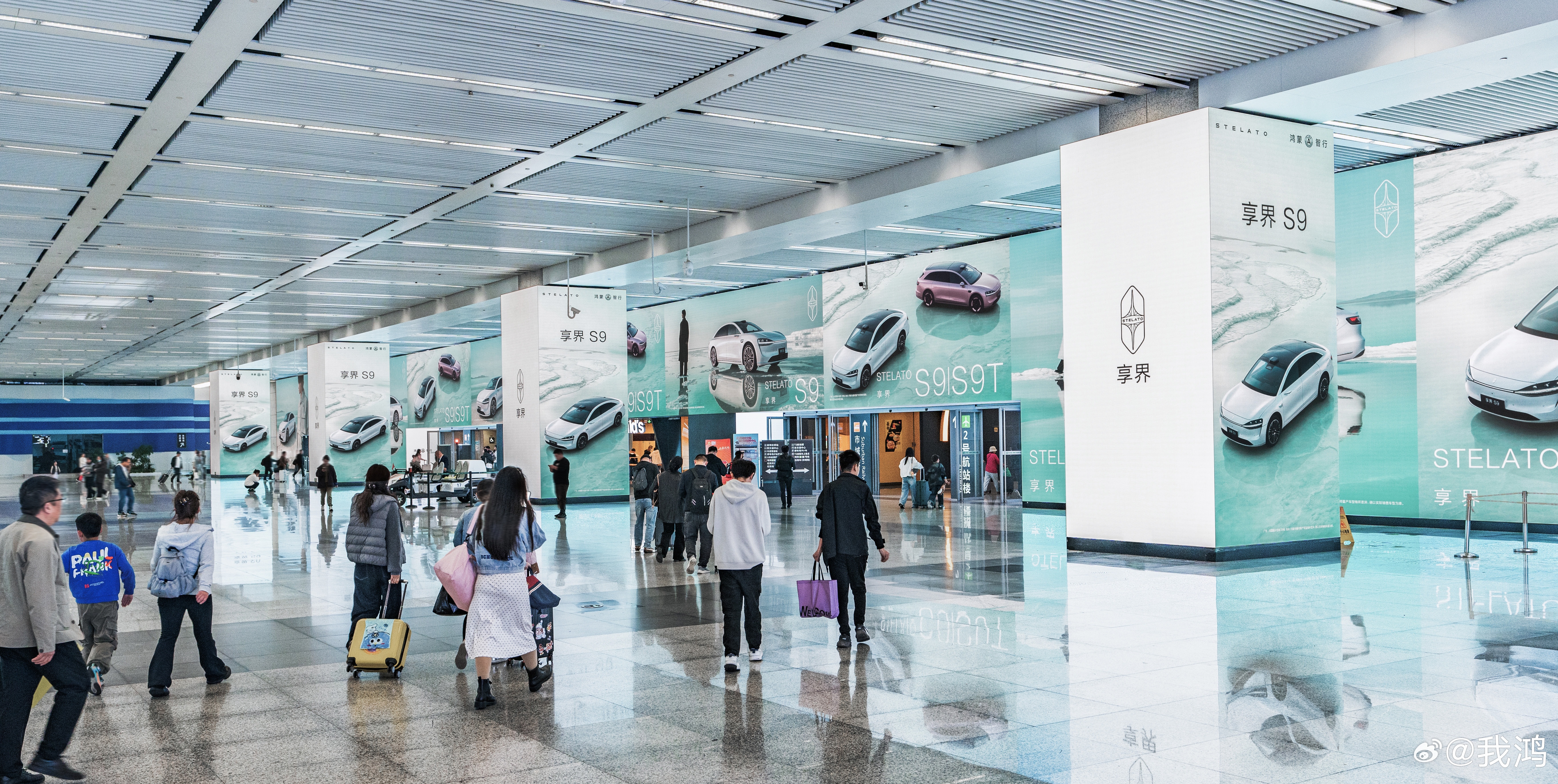 享界S9、S9T,霸屏上海虹桥枢纽,好震撼。落地上海的朋友有看到吗?