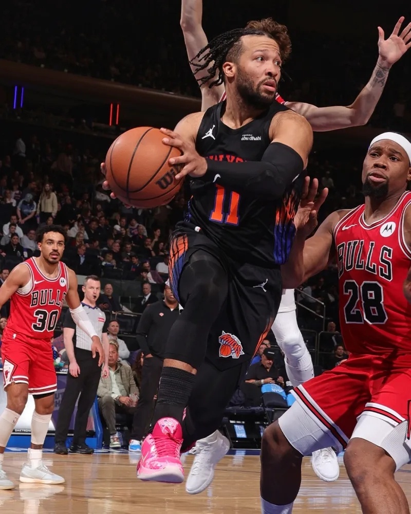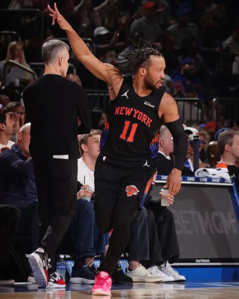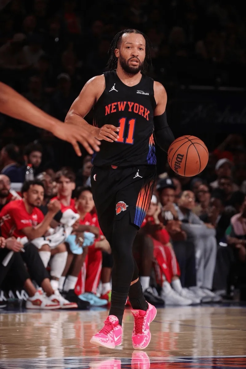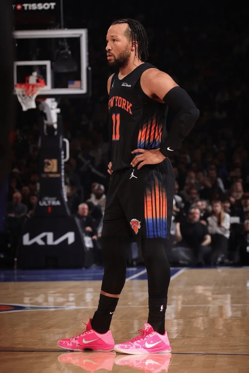 【🏀布伦森穿着粉色科比5,得到17分1篮板10助攻💥】