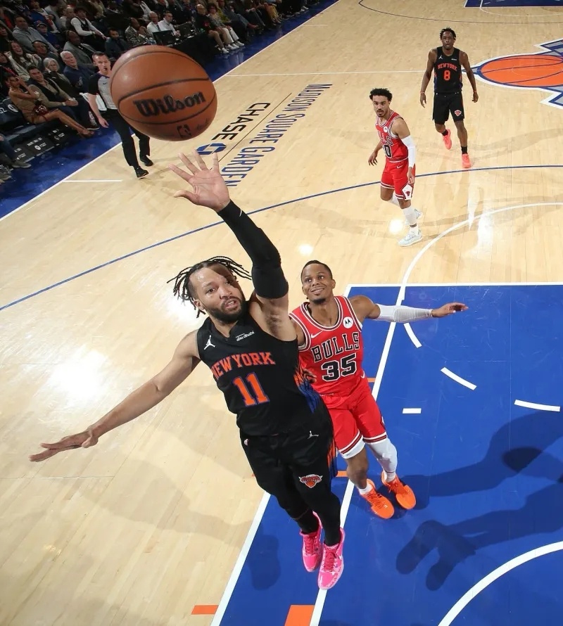 尼克斯队在今天的常规赛中以136-96的大比分战胜了公牛队,其中球队球员杰伦-布伦森的表现尤为抢眼!💪