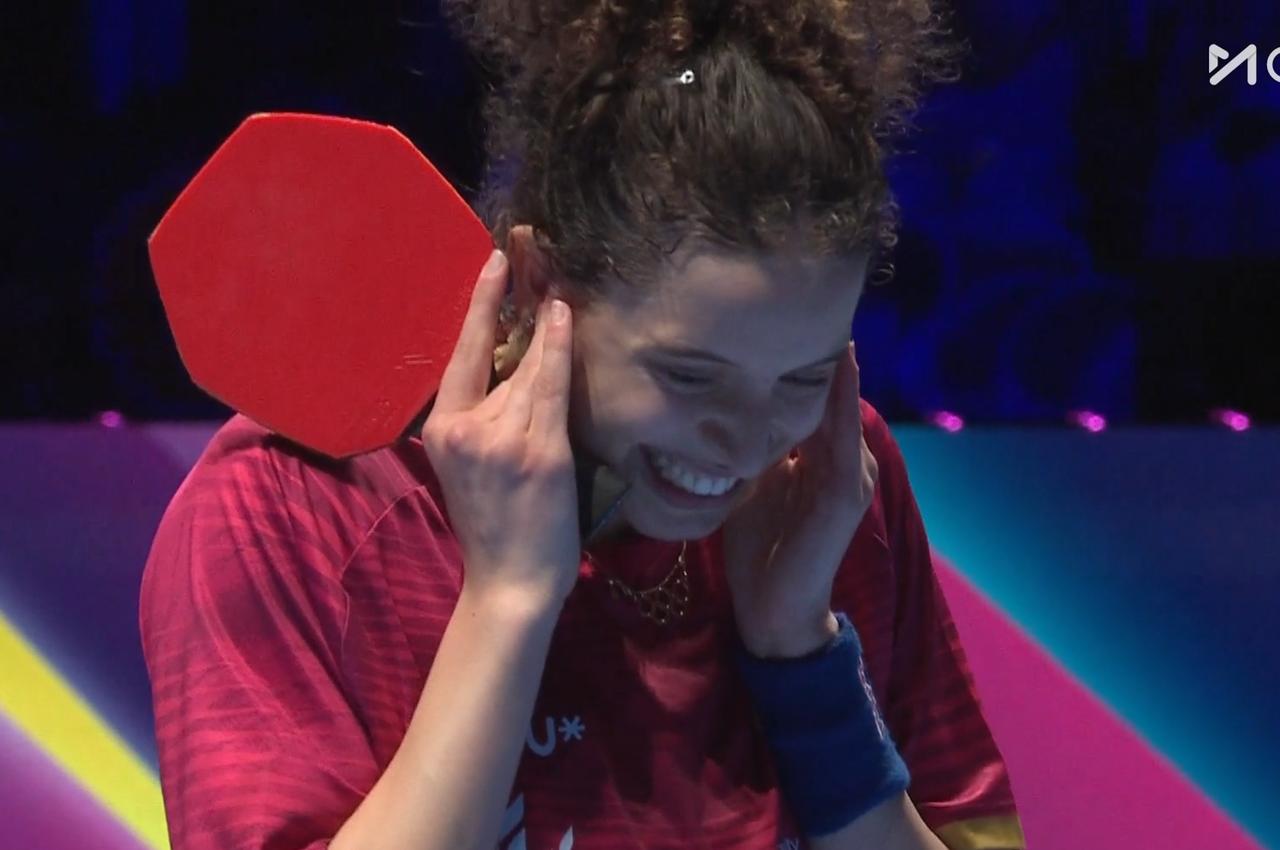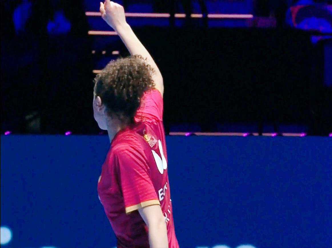 侯英超说:今天汉娜高达的发挥太好了, 孙颖莎已经没有退路了, 最强版,变身版的孙颖莎, 必须出来了。 目前大比分, 孙颖莎2:3落后, 再输一局, 就要出局了。 第六局 让我们看到搏杀版的孙颖莎, 孙颖莎7:1开局, 10:2拿到局点, 11:3拿下。 两人大比分打到了3:3平, 决胜局马上打响了!