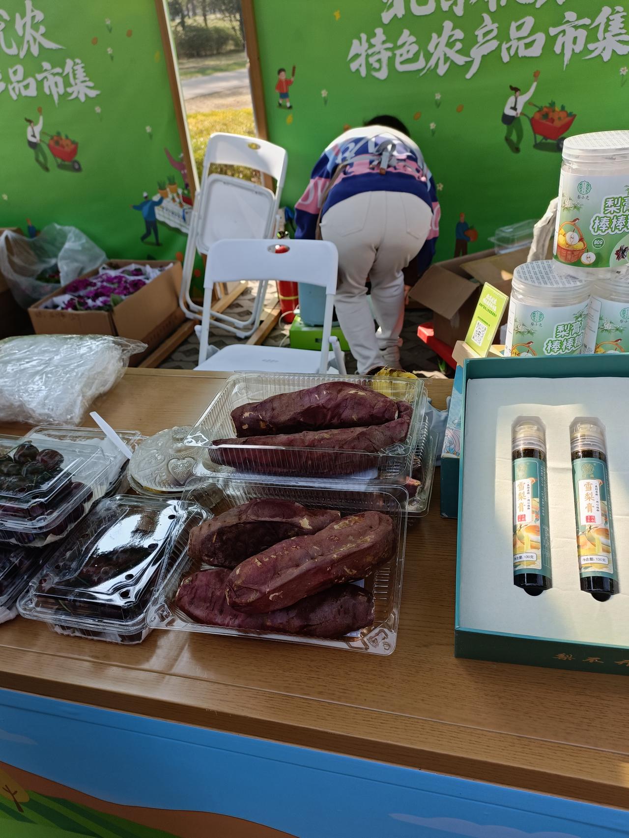 晒图笔记大赛寻鲜菜市场展出了大量的农产品,新鲜果汁,连烤红薯都登上了舞台,还有鲜花售卖