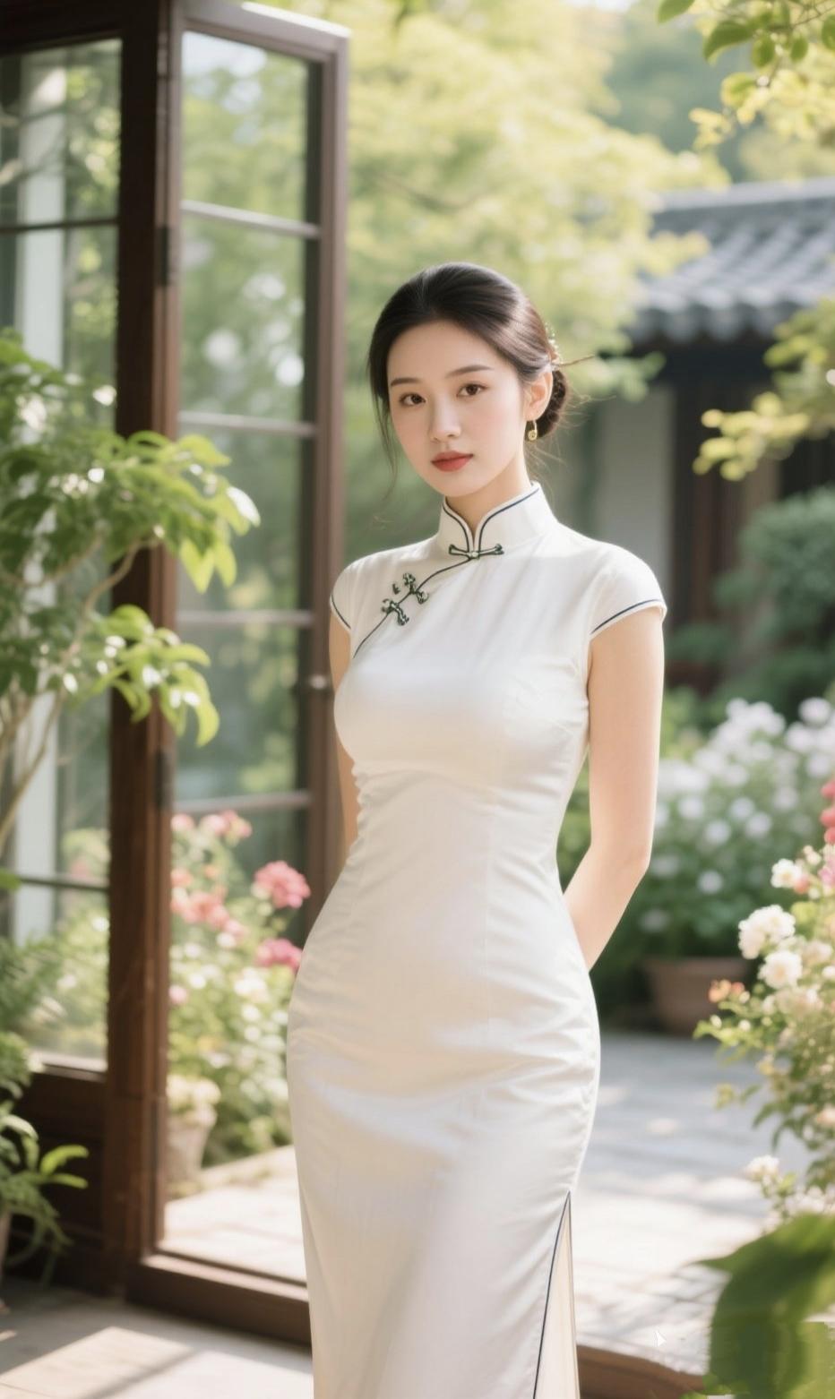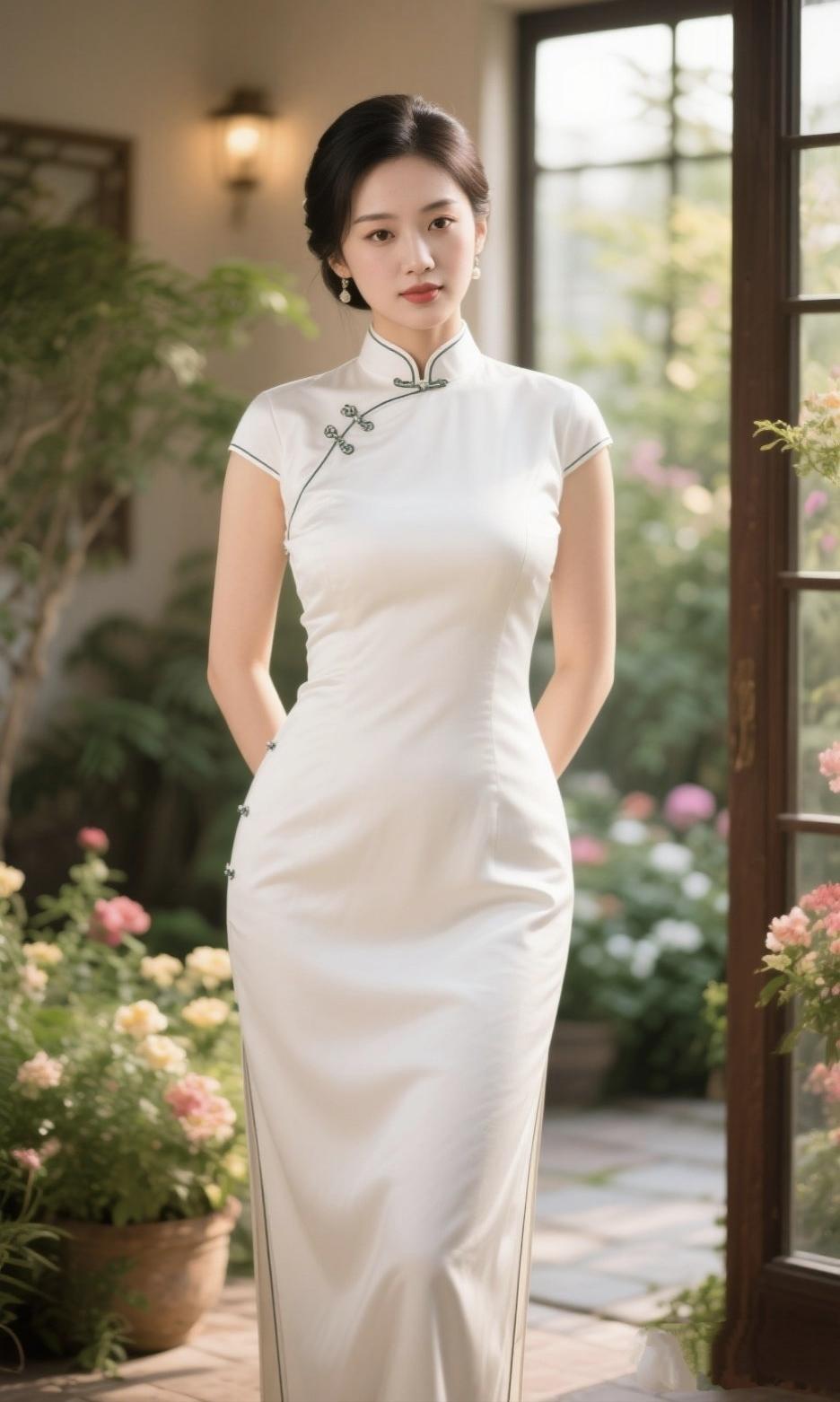 《旗袍裹身,岁月沉香》 针脚藏起江南的月光 盘扣轻扣,锁住一段旧时光 锦缎如溪,缓缓淌过腰肢 一转身,便是烟雨巷陌悠长 立领微扬,托着温婉脸庞 开衩轻曳,踏碎尘世匆忙 不与繁花争艳,不与风月逞强 只把温婉,绣进岁月诗行 墨色染风骨,花色映柔肠 一步一莲,一步一思量 旗袍裹身,不问流年短长 暗香浮动,静候岁月绵长 旗袍水墨风 江南旗袍故事感 国风礼服旗袍 旗袍立领裙 旗袍古典韵 温柔盘扣 时空旗袍写真