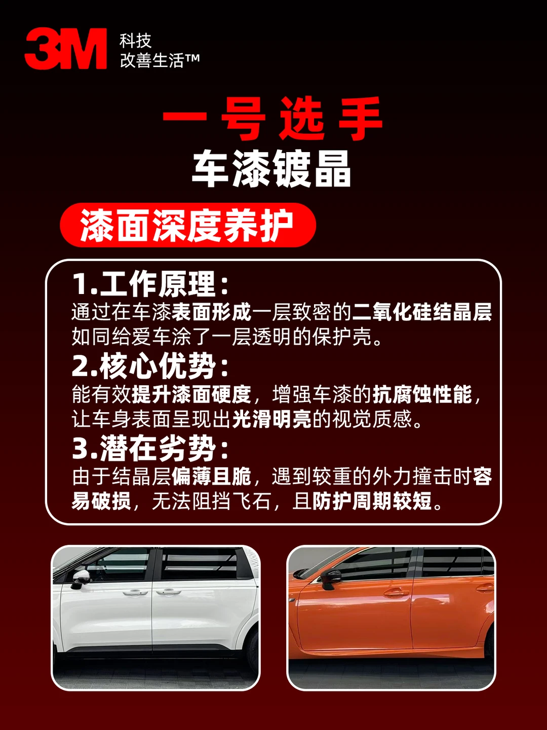 ⚠️ 缺点:结晶层相对较薄,遇到较重刮蹭时防护力受限,且伴随时间推移防护力会逐渐减弱,使用周期较短。
