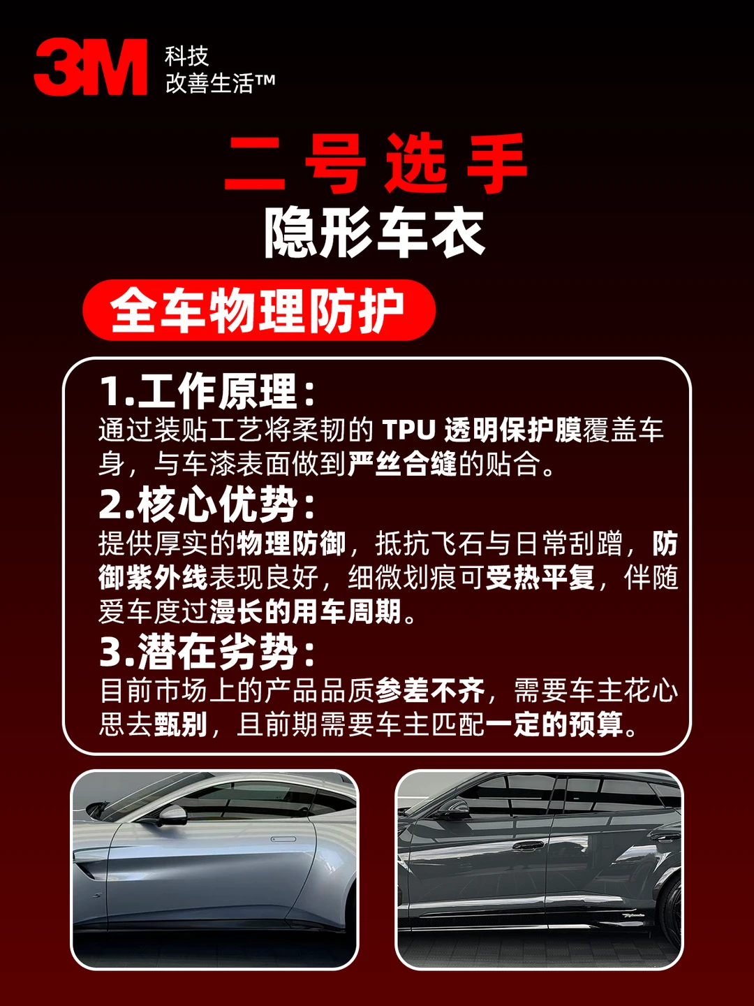 ⚠️ 缺点:市场上产品参差不齐,且随着膜材性能的提升,前期需要车主匹配一定的预算。