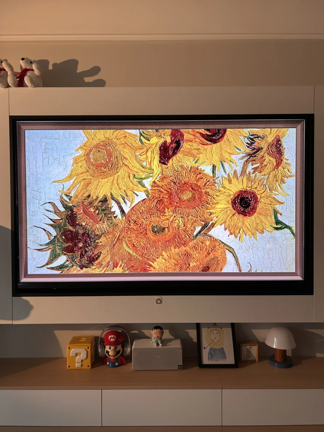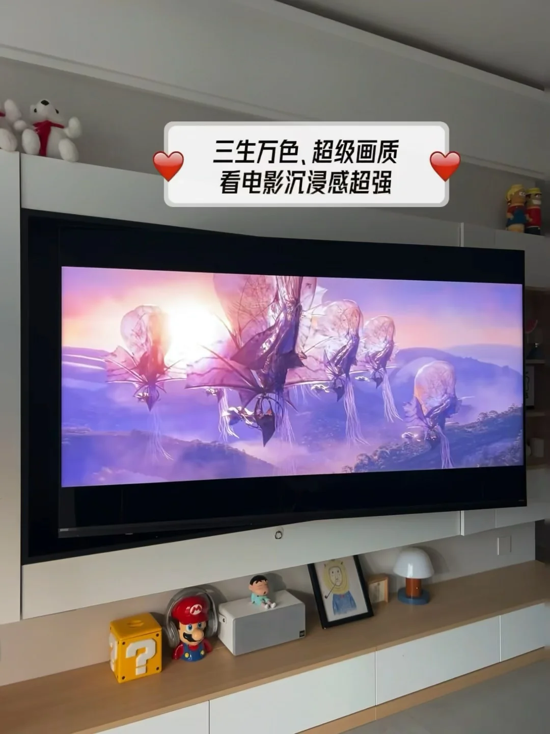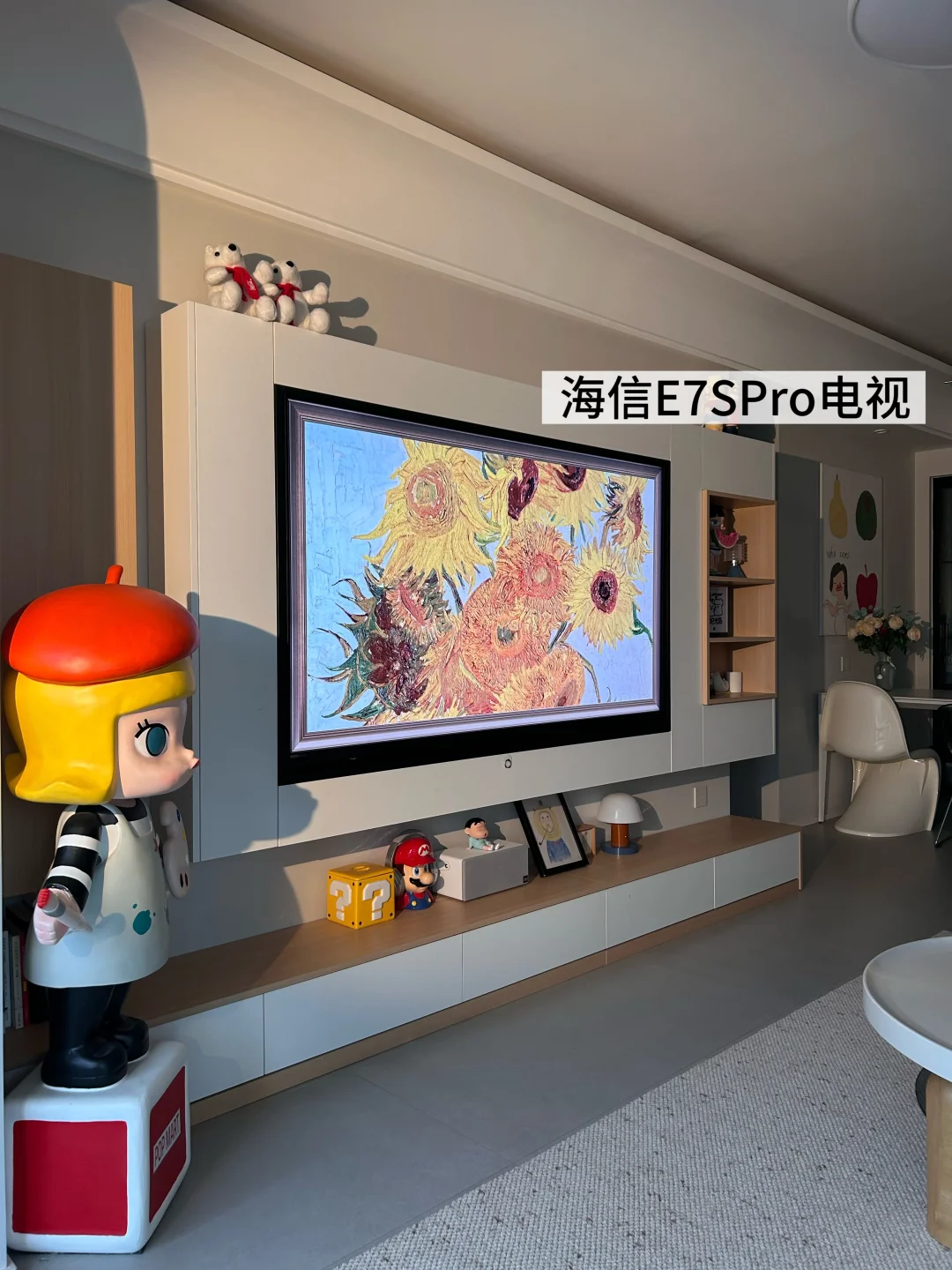 👉我平常不看电视的时候就把它打开,屏保设置成自带的世界名画壁纸、显色度高逼真感就像挂的真画!这都得益于他的RGB-Mini LED技术,上墙后显得我家里都高级了起来[害羞R]