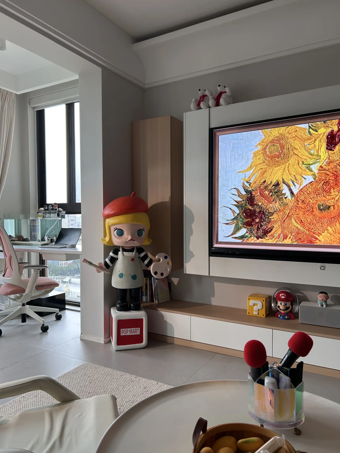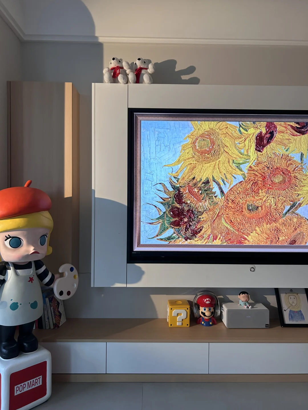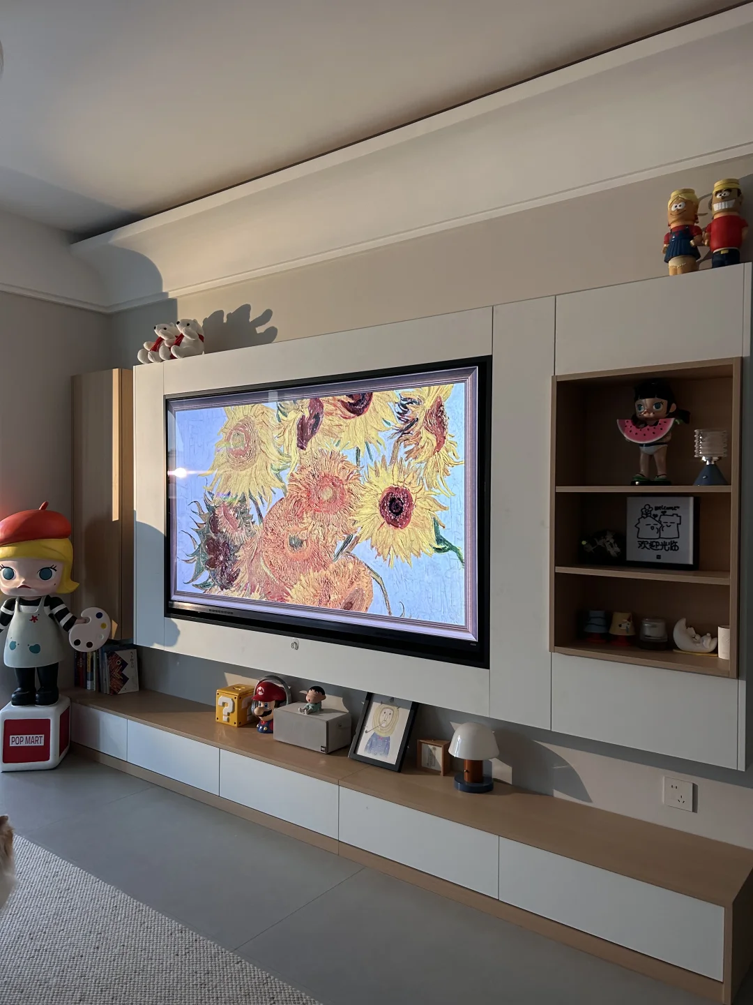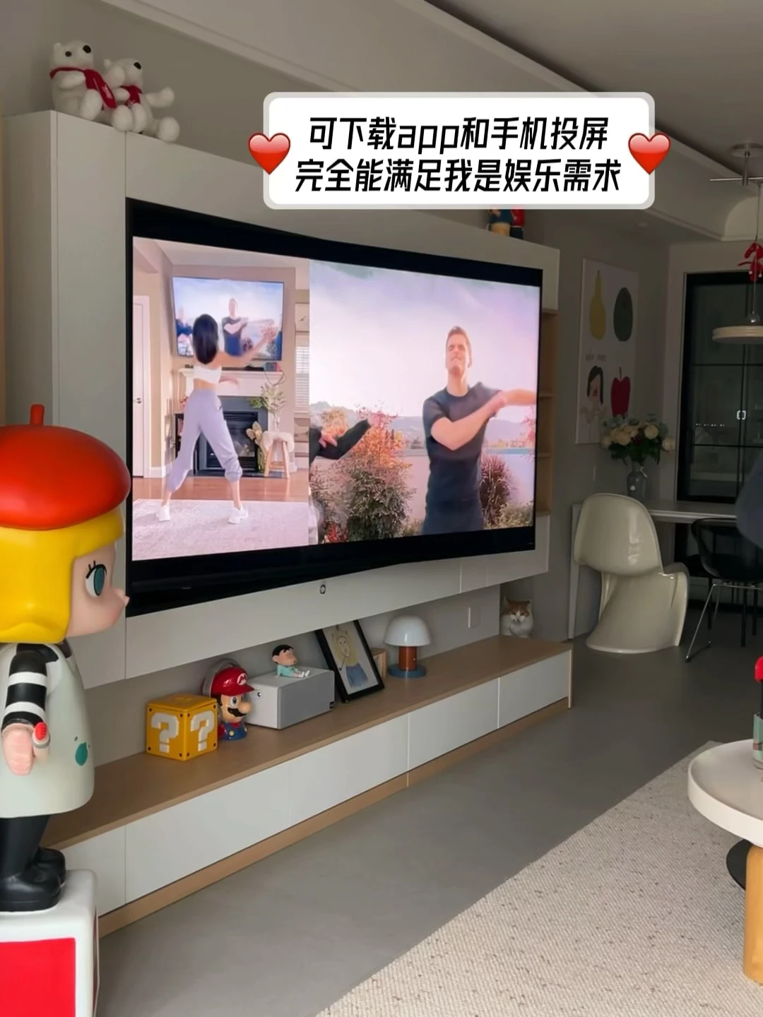 👉我平常不看电视的时候就把它打开,屏保设置成自带的世界名画壁纸、显色度高逼真感就像挂的真画!这都得益于他的RGB-Mini LED技术,上墙后显得我家里都高级了起来[害羞R]