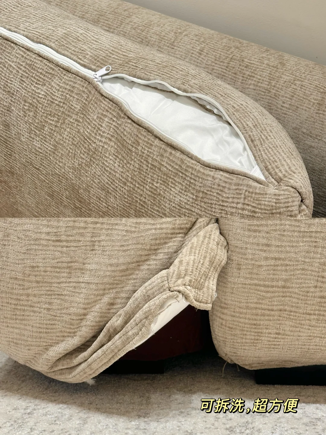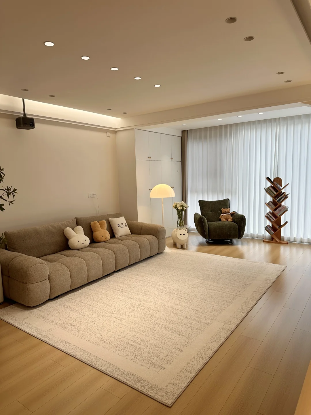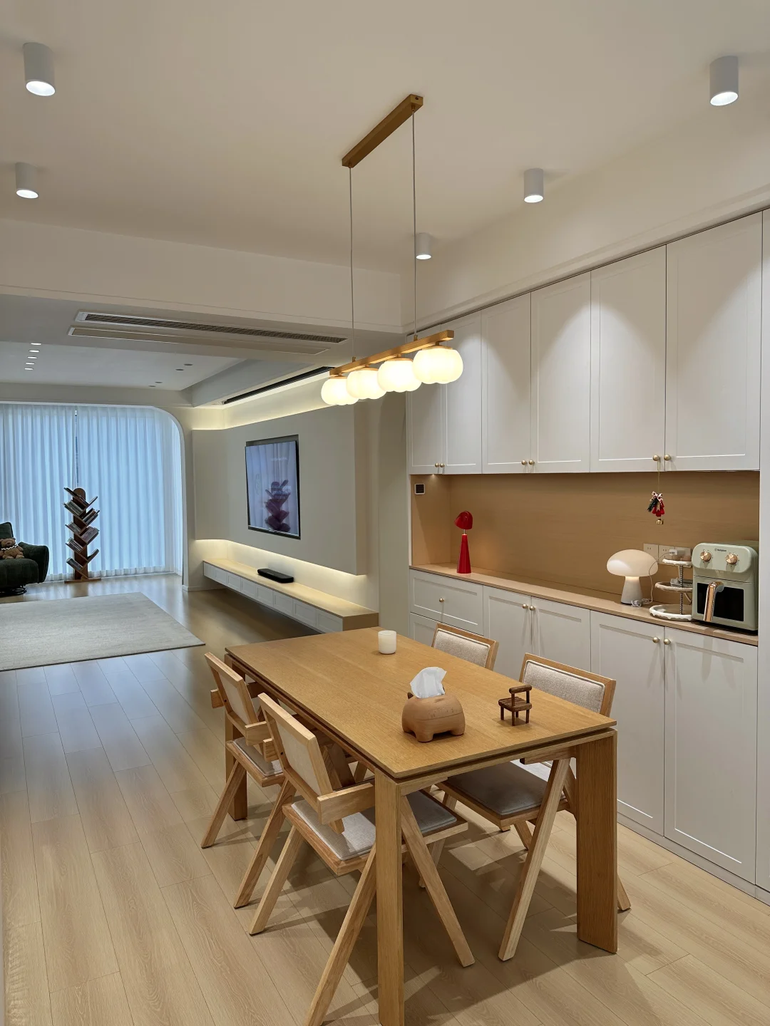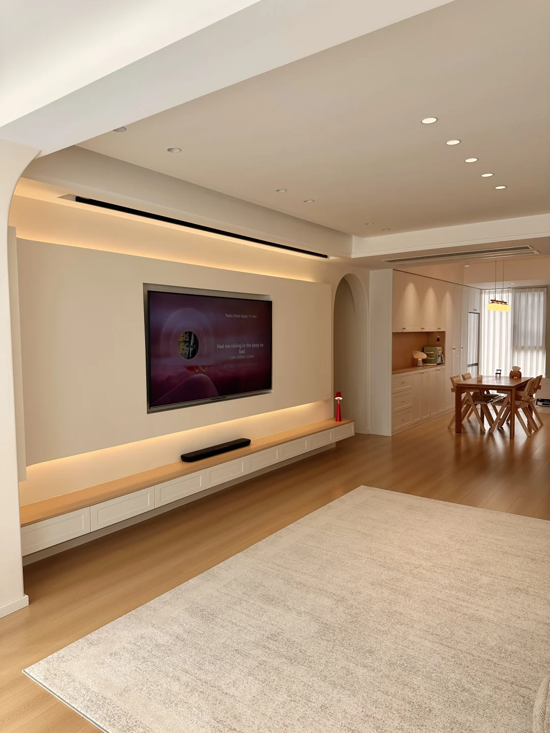 我的小家装修简简单单,大白墙➕木地板通铺,没有隔断让客餐厅的空间开阔又显大,无主灯氛围感满满~ 客厅开间有4米6,大落地窗视野比较开阔,平时大部分时间都在客厅活动,一张温柔如云朵的沙发是客厅的C位,柔软的雪尼尔面料,耐磨耐刮,还是全身可拆洗的设计,小盆友在沙发上玩耍再也不用小心翼翼啦,终于可以零食和饮料自由,这些小污渍都能轻松打理~ 圆润极简的线条,超宽做深独立可调节60~80cm,可坐可躺,无论是追剧还是小憩,都可以最舒适的角度享受,靠背柔软又能稳稳的承托,靠上去的那刻,一整天工作的疲惫瞬间释放~ 新家入住后才发现,家能够给我们提供的情绪价值远远不止有家回的那一刻,而是推开门,窝在沙发里,慢慢的享受着慢生活,或发呆,或小憩,或看书,或追剧……