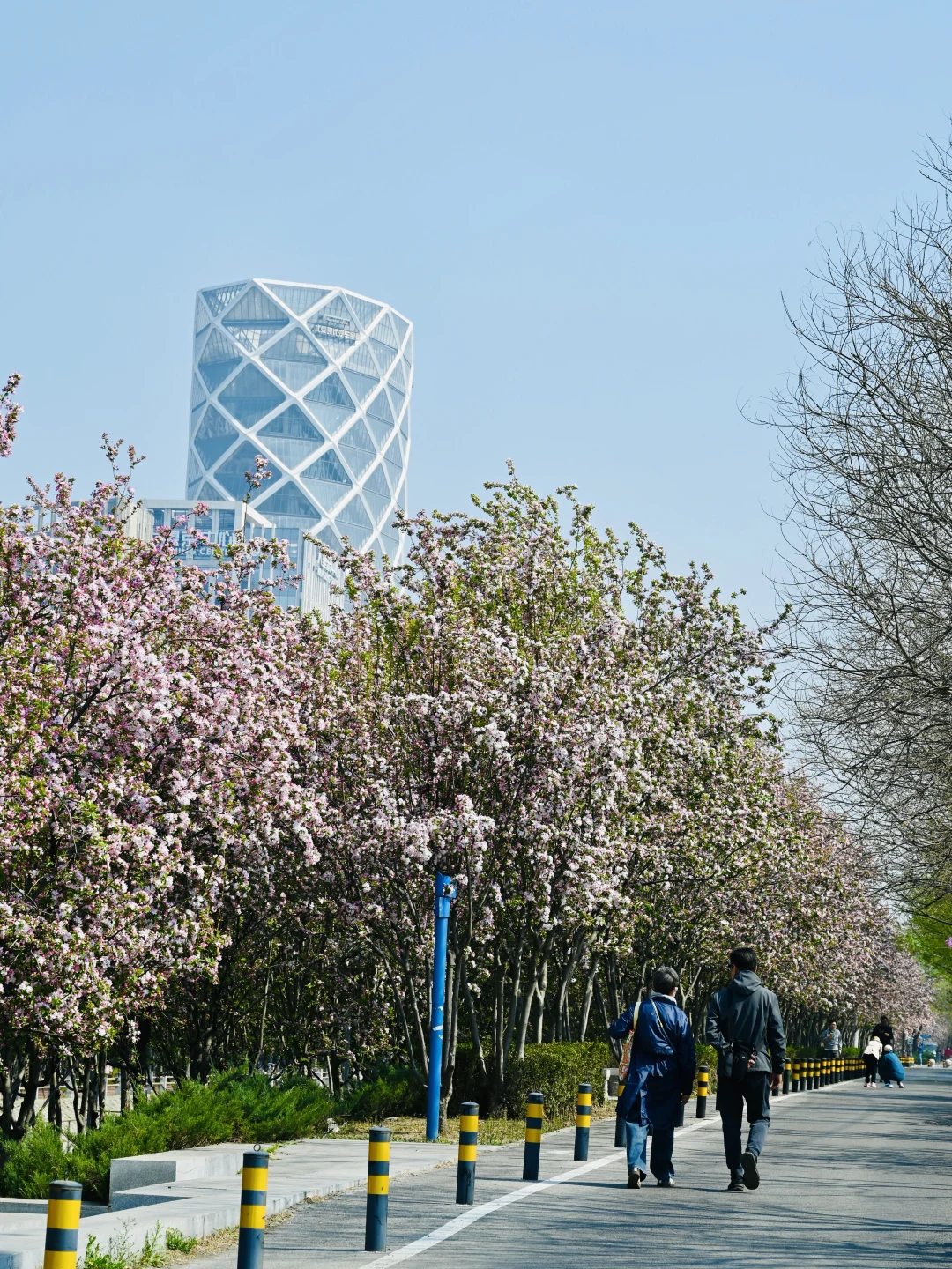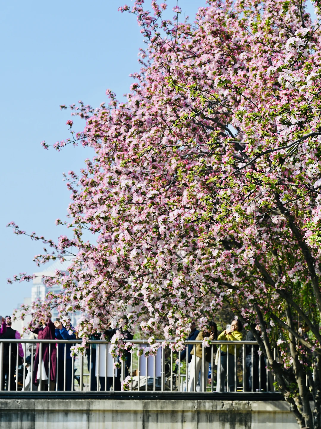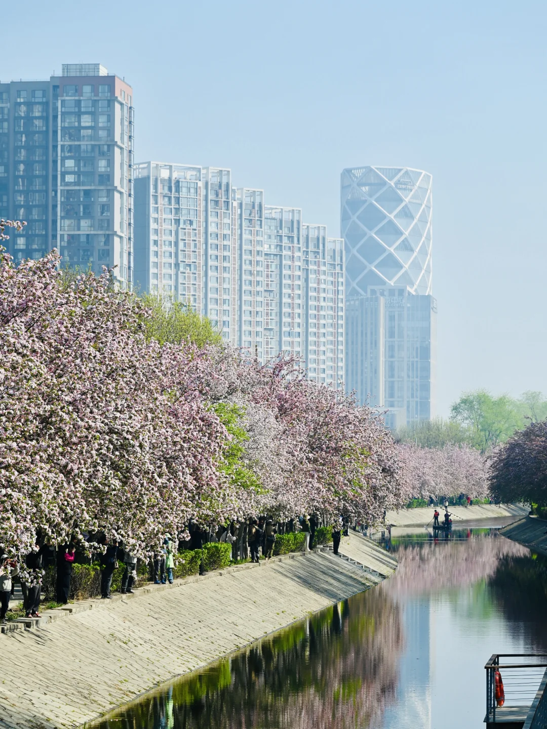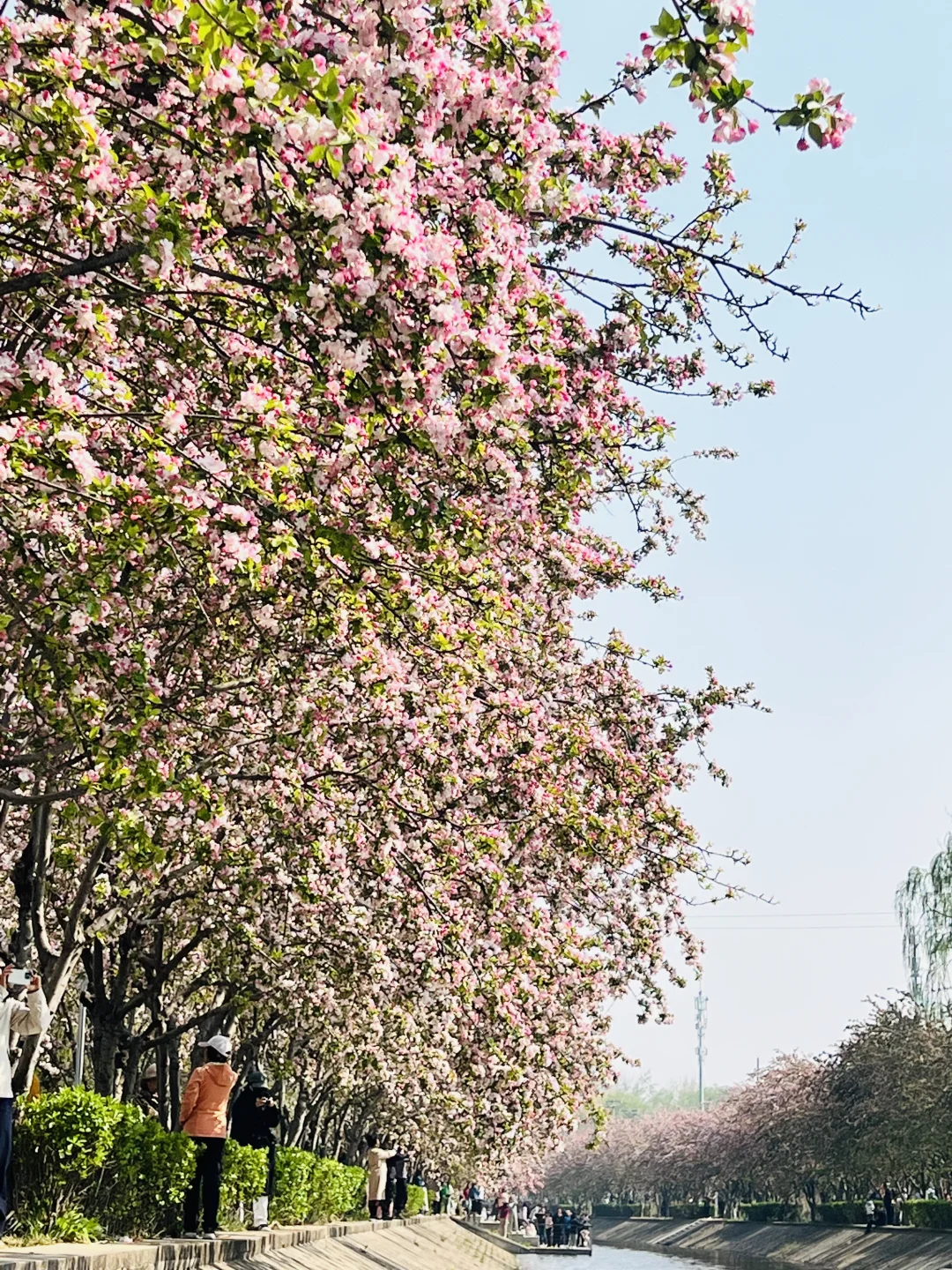 📸照片均为2026.4.4实拍 望京海棠花溪全面盛花啦~[派对R] 北京春天不能错过的海棠花盛宴🌸 📍位置:望京 地铁望京南站B1口出就能看到 一直走到望京街过了马路,这边人少,海棠马路纵深感非常适合拍人像P5P8 蜿蜒河道上满满粉色海棠 比元大都毫不逊色,配衬远处的望京建筑 蓝天春日微风拂面 逛起来十分舒服😌