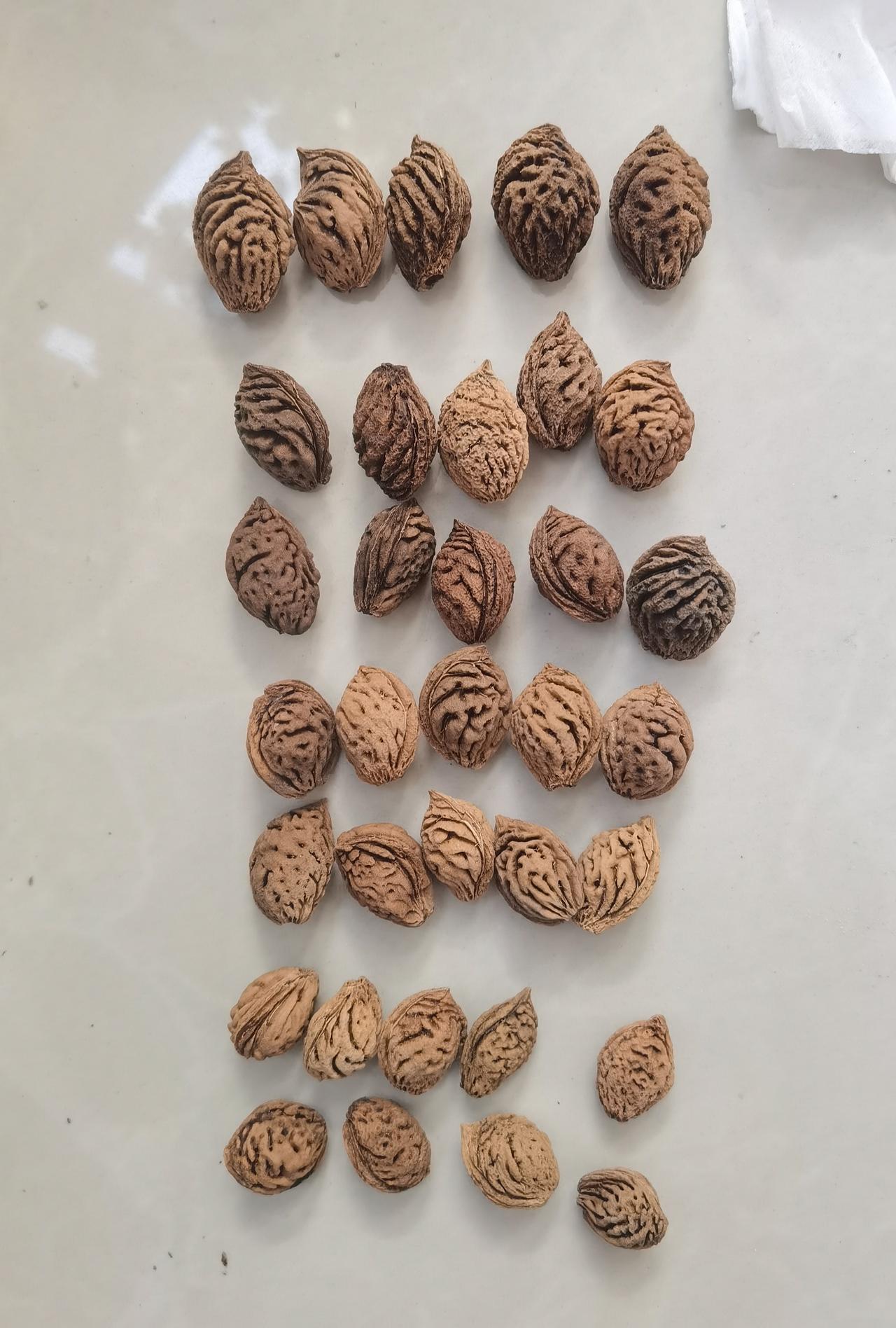 帮朋友手搓桃枭核一串儿玩友们,敢不敢晒晒你的桃核串真费手,左手食指米粒大小一块肉