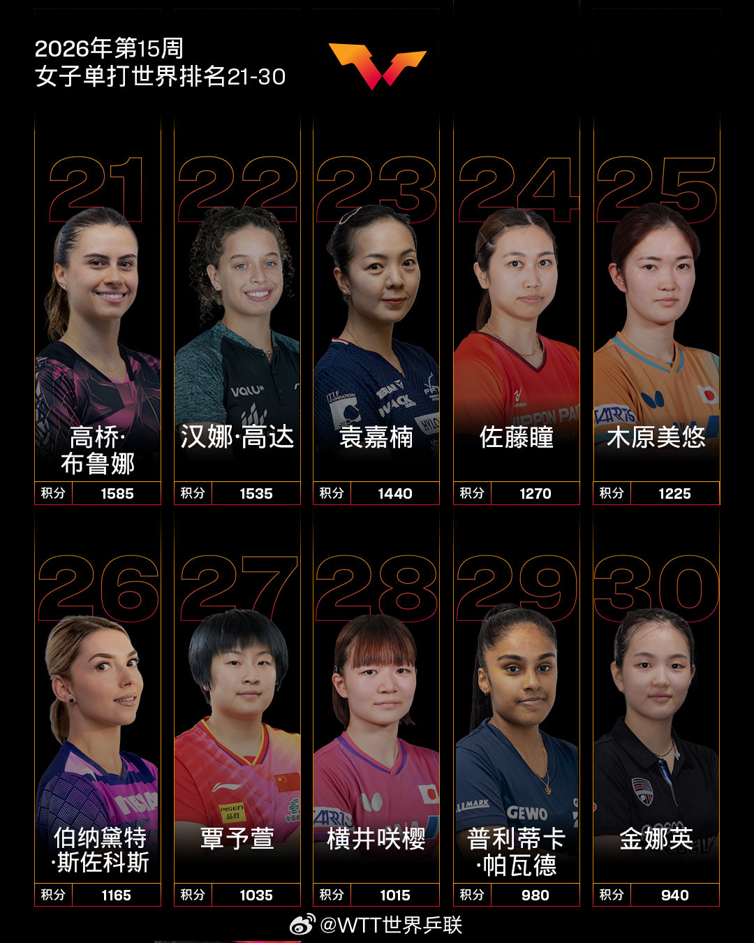 #国际乒联第15周世界排名出炉##温瑞博世排生涯新高#