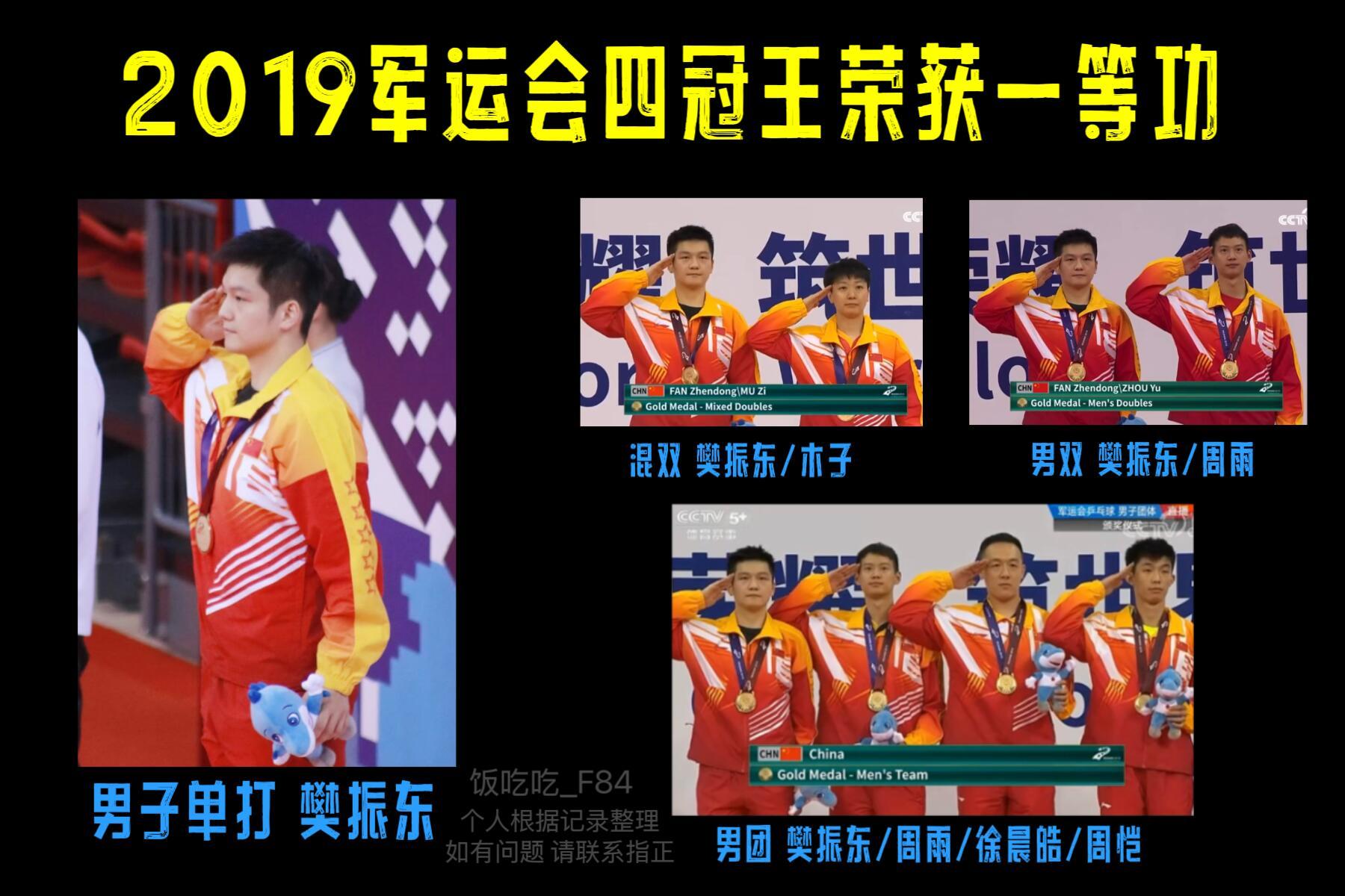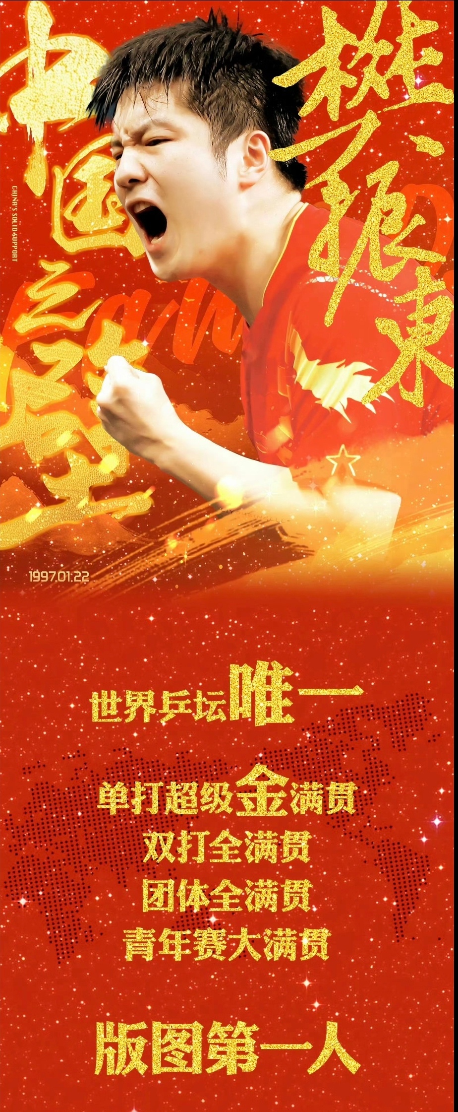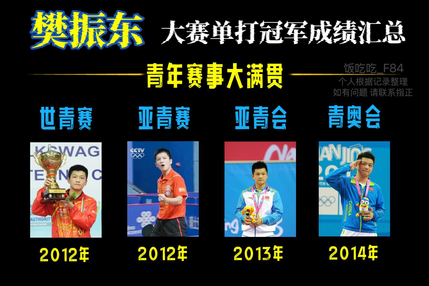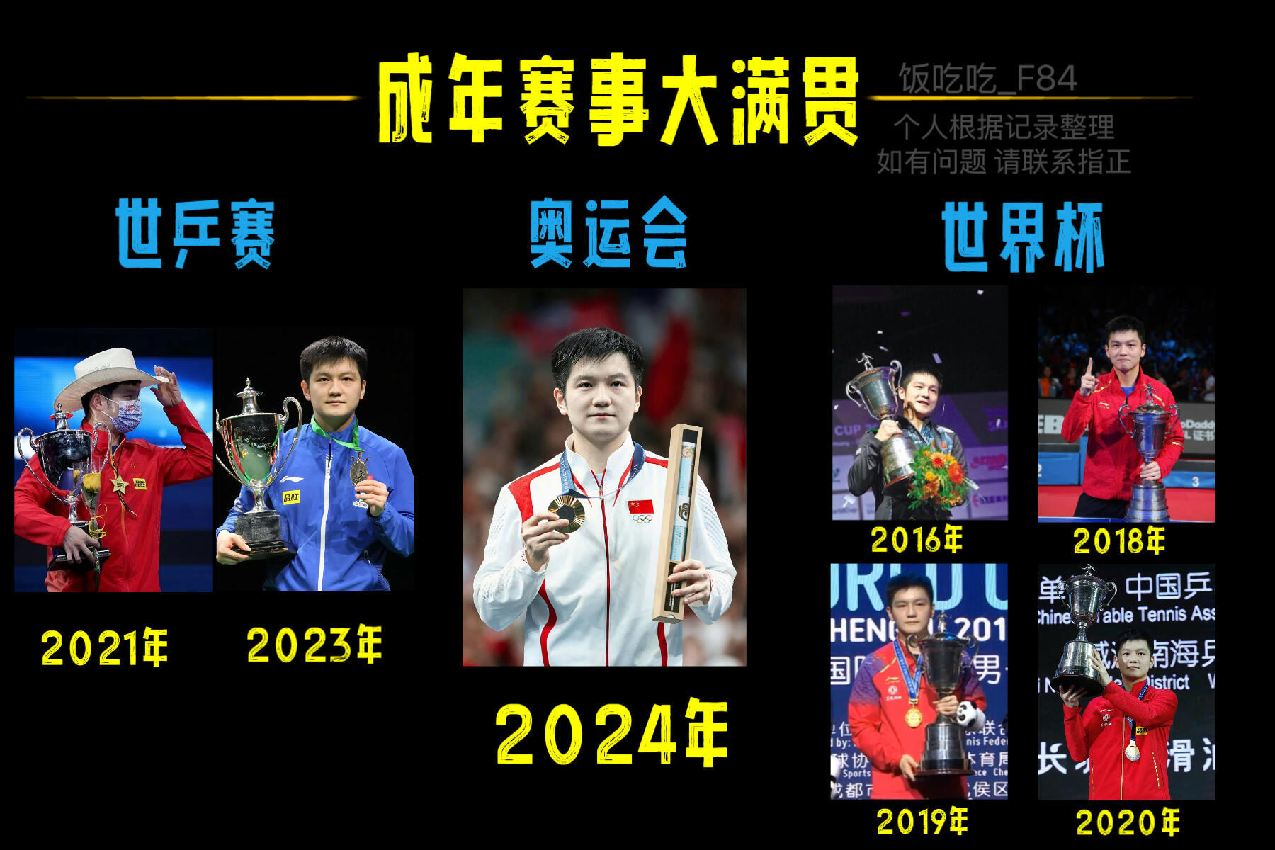 乒乓球界通关第一人:樊振东。 青年赛事大满贯:世青赛、亚青赛、亚青会、青奥会。 成年赛事大满贯:世乒赛、世界杯、奥运会。 成年赛事全满贯:成年赛事全满贯+全锦赛、全运会ITTF总决赛。 成年赛事超级全满贯:成年赛事全满贯+亚运会、亚洲杯、亚锦赛。 成年赛事超级金满贯:成年赛事超级全满贯+WTT大满贯、WTT总决赛、WTT冠军赛。 樊振东无上荣誉:军运会四冠王荣获一等功