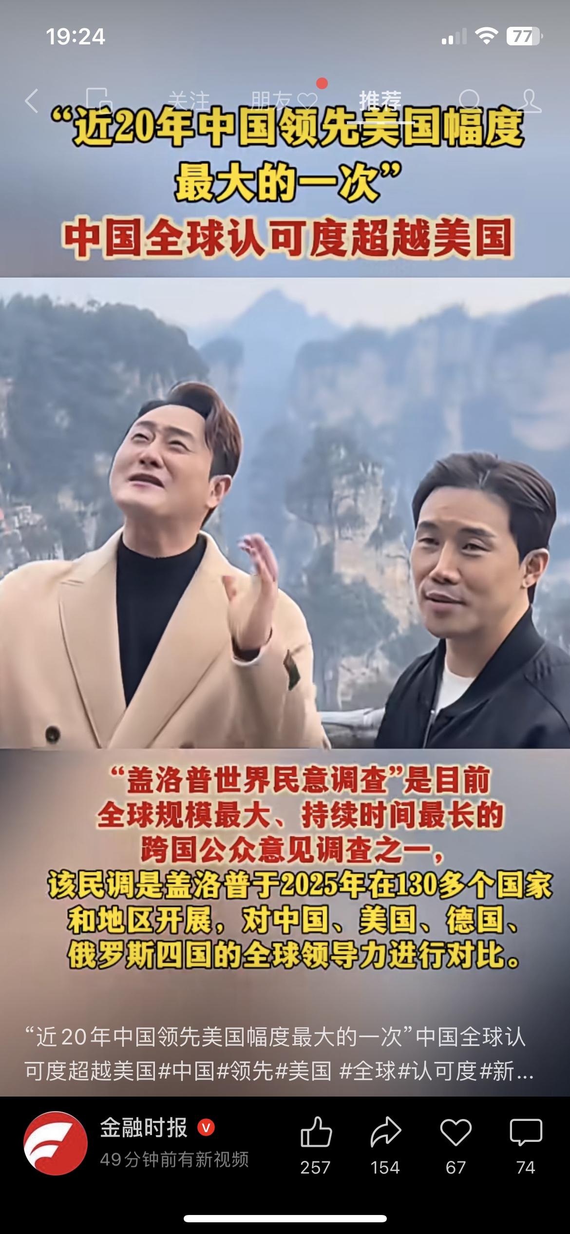 太提气!中国全球认可度超美,普通人感受最真实 盖洛普最新调查炸锅了! 中国全球认可度,实现近20年来首次对美国的大幅反超! 三项核心指标全面领先,23个国家对中国满意度大涨,美国支持率在多地暴跌超10个点。 这不是虚的排名,是咱国家经贸、基建、国际合作一点点拼出来的。出门旅游、跨境购物、海外口碑,普通人都能真真切切感受到变化。大国底气,越来越足! 中国国际地位 全球热点 大国崛起老外热议中国