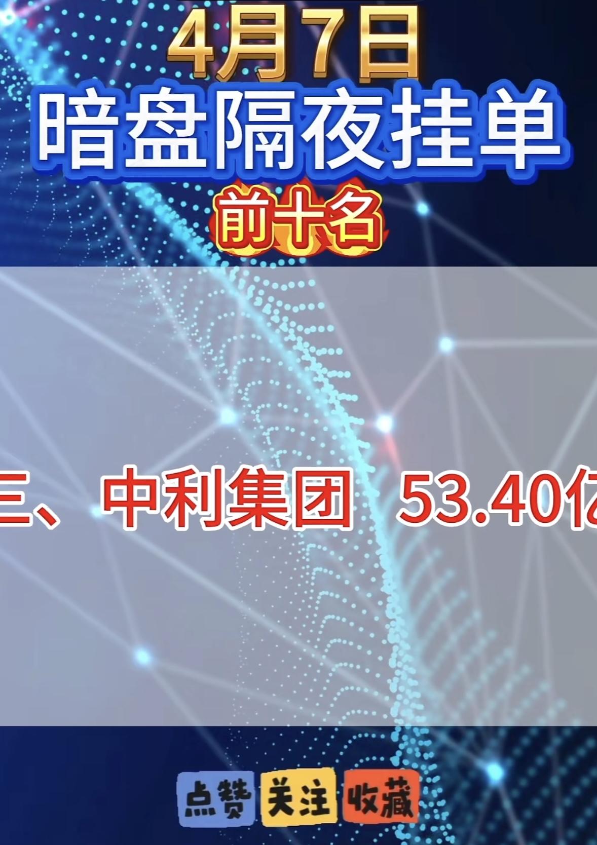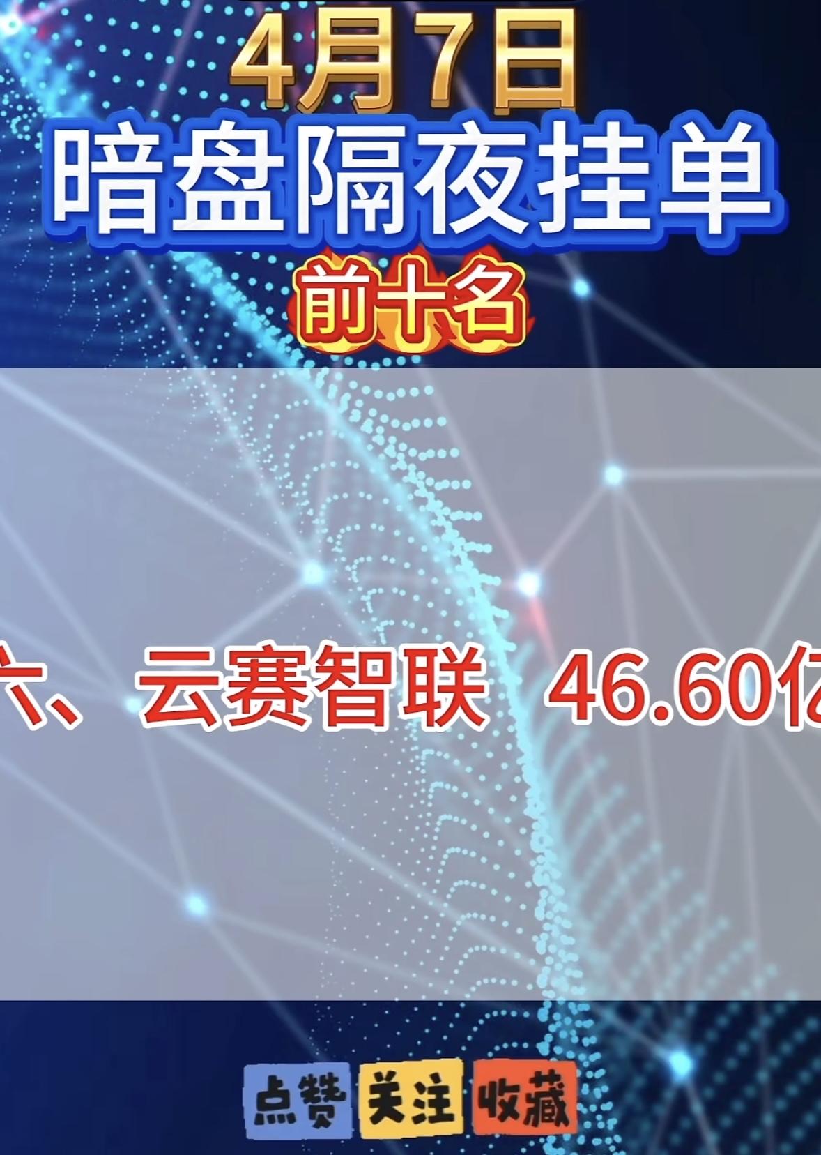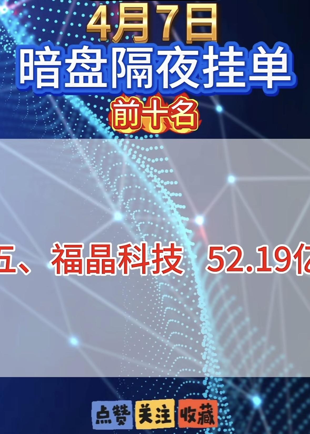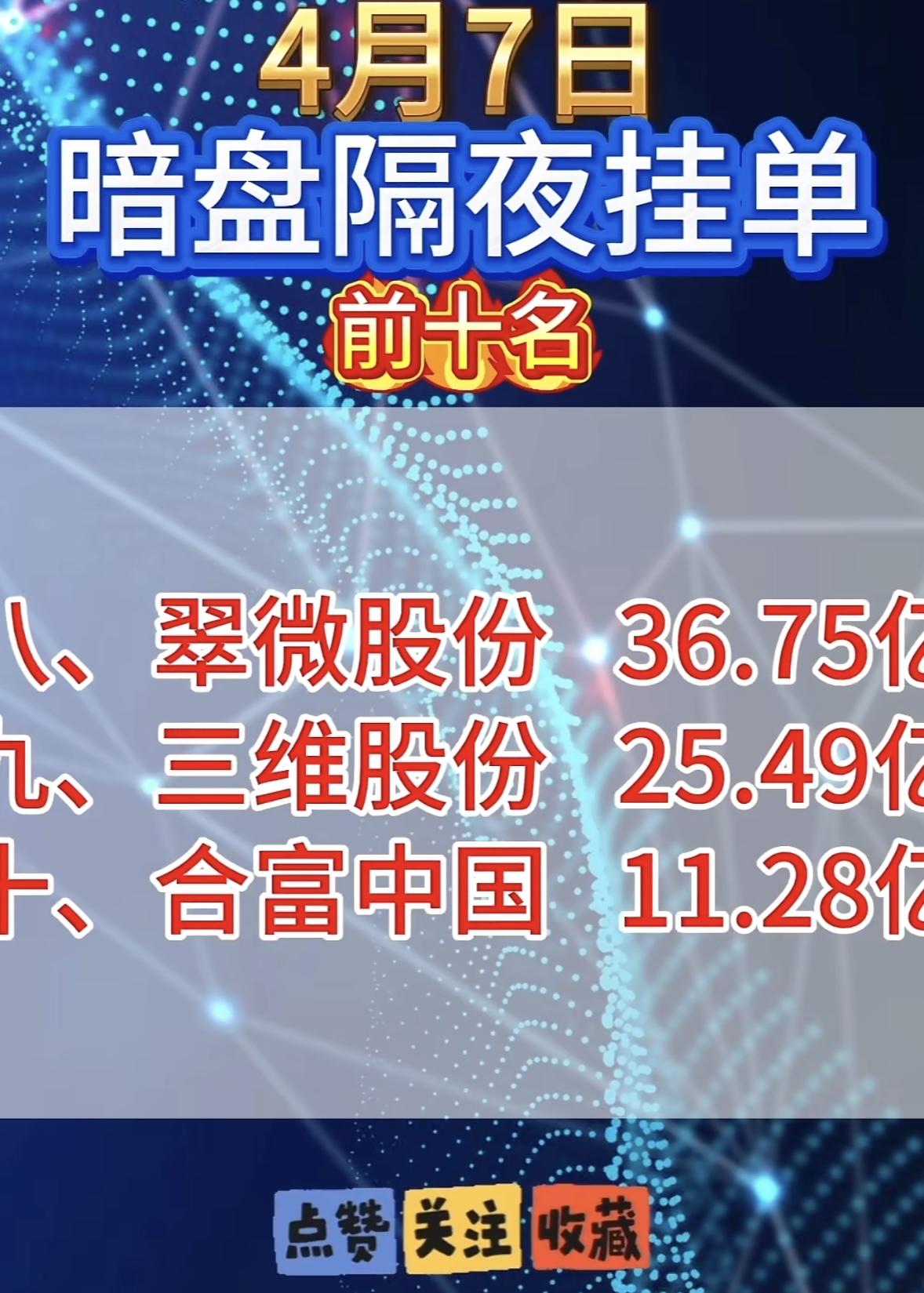 4月7日周二暗盘隔夜挂单排行榜出炉 4月7日暗盘隔夜挂单榜前10名揭晓,这可太