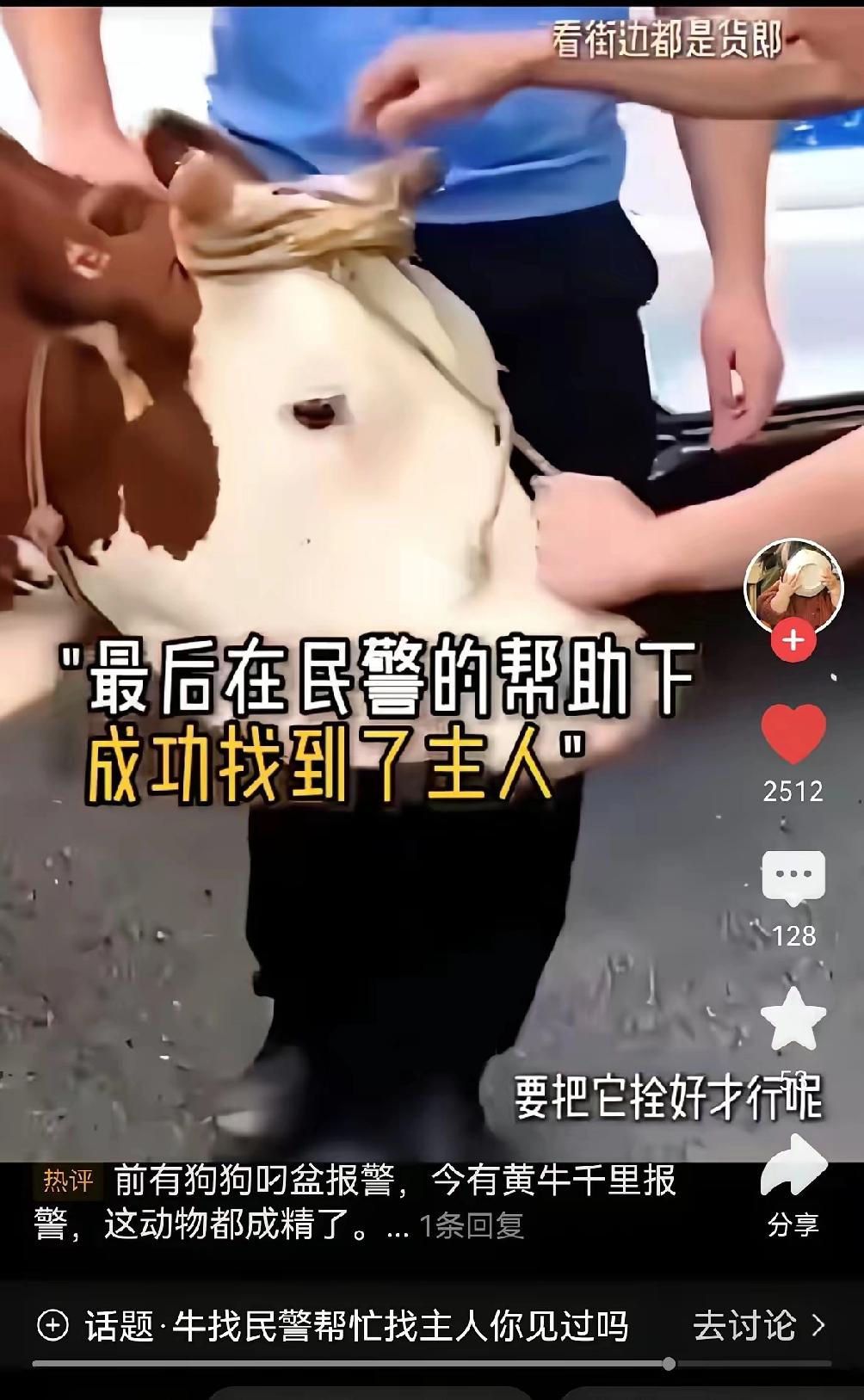 湖北这头老牛简直成精了!70多岁的周大爷把牛赶到山上吃草,自己去办事结果忘了时间。牛吃完草发现主人不见了,直接开启“寻主模式”。 这牛超淡定,它穿过青龙河道,绕开水泥桥,一路往西,径直就跑到了板桥派出所。监控里,它步伐稳健,跟熟门熟路去办事似的,把民警都看懵了。 板桥派出所的院子里,那天正忙着处理邻里纠纷和户籍业务,冷不丁就听见院门外传来“哞哞”的低鸣。民警探头一看,直接愣住了——一头毛色棕黄的老牛正慢悠悠踱进院子,不慌不忙找了个阴凉处站定,脑袋还时不时往派出所门口望,既不撒欢乱跑,也不对着人狂叫,那副淡定模样,活像专程来办业务的“老主顾”。 起初民警还以为是周边农户家的牛跑丢了,毕竟山里农户养牛的不少,偶尔有牲畜走散也属常事。可这牛越看越不对劲,它站在院子里纹丝不动,眼神直直盯着进出的民警,尾巴慢悠悠甩着赶蚊虫,半点没有走失牲畜的慌张。 有民警试着上前搭话,它也只是轻轻晃了晃脑袋,仿佛能听懂人言一般,这份通人性的表现,让满院的民警都忍不住面面相觑,心里直犯嘀咕:这牛难不成是有什么急事? 没人知道这头老牛从山上到派出所的一路,到底走了多久,也没人清楚它是怎么精准避开路上的行人和车辆,精准找到板桥派出所的。可顺着它的路线往回推,就能发现其中的门道:它穿过的青龙河道,是周大爷平时常带它饮水的地方 绕开的水泥桥,是两人往返山上与镇上的必经之路;一路往西的方向,更是周大爷办事常去的板桥村片区。对这头跟着周大爷生活了五六年的老牛来说,这些路线不是陌生的路途,而是刻在记忆里的“回家路”。 周大爷发现牛不见时,才后知后觉拍了拍脑门。他原本只是去镇上给孙子买零食,想着买完就回山上接牛,结果被镇上的老伙计拉着聊了几句家常,一聊就把时间忘得一干二净。等想起牛还在山上,他才慌了神,一路小跑往山上赶,边跑边喊牛的名字,可山里除了风声,没半点牛的回应。 70多岁的老人,腿脚本就不利索,跑了没多远就气喘吁吁,越想越急,眼泪都快急出来了——这头老牛陪了他五年,既是家里的“帮手”,也是他独居生活里最亲的伴儿,真怕牛出什么意外。 这边周大爷急得团团转,那边派出所里的民警也开始帮着找牛的主人。有民警调出村口的监控,顺着老牛的足迹往回查,又挨个询问附近的村民,才有人认出这牛是周大爷家的,还顺带给了周大爷的联系方式。 民警拨通电话时,周大爷正瘫坐在山路边的石头上,接到电话的瞬间,悬着的心才算落了地,嘴里反复说着“谢谢民警,谢谢这头通人性的牛”,挂了电话就快步往派出所赶。 等周大爷见到牛时,这头平日里沉稳的老牛竟突然凑了上来,脑袋轻轻蹭着他的手背,喉咙里发出温柔的低鸣,像是在委屈地诉说“主人你去哪了”,又像是在庆幸“终于找到你了”。周大爷摸着牛粗糙的皮毛,眼眶瞬间红了,一边拍着牛背一边念叨:“你这老伙计,还知道跑来找我,真是没白疼你。” 这头老牛的“寻主”,哪里是什么“成精”,分明是多年陪伴攒下的情分。周大爷独居在山里,子女都在外地打工,平日里除了打理农田,就只有这头老牛陪着。 他每天放牛、喂草、牵牛回家,老牛也跟着他日出而作、日落而息,久而久之,不仅记住了主人的气息,记住了往返的路线,更记住了主人是它唯一的依靠。 对周大爷来说,老牛不是一头普通的牲畜,是能陪他说话、解他孤单的家人;对老牛来说,周大爷也不是单纯的主人,是给它遮风挡雨、喂它草料的亲人。 可这件事也藏着让人揪心的细节。70多岁的周大爷独自上山办事,转眼就忘了时间,若不是这头老牛主动寻主,后果不堪设想。独居老人的安全问题,从来都不是小事。 子女不在身边,老人独自外出时,很容易因为记性不好、行动不便陷入困境,而身边的家养宠物,反倒成了他们最可靠的“守护者”。这头老牛的举动,也让更多人看到:人与动物之间的情感,从来都不分物种,一份真心的陪伴,就能换来毫无保留的信任。 也有人觉得,这只是一件偶然的趣事,没必要过度解读。可恰恰是这份“偶然”,戳中了当下很多人内心的柔软。 在快节奏的生活里,大家总觉得人情淡薄,可一头老牛用自己的方式诠释了“忠诚”与“牵挂”,打破了“动物不懂感情”的刻板印象。它不会说人类的语言,却用行动告诉我们,它记得主人的模样,记得回家的路,记得这份跨越物种的羁绊。 这件事也给大家提了个醒:养宠也好,养牲畜也罢,相处久了,彼此就成了家人。而对独居老人来说,身边的家养动物不仅能增添生活乐趣,更能在关键时刻成为“守护者”。同时,子女也该多抽时间陪伴父母,或是叮嘱老人外出时做好标记、带上通讯设备,避免类似“忘事丢牛”的意外发生。