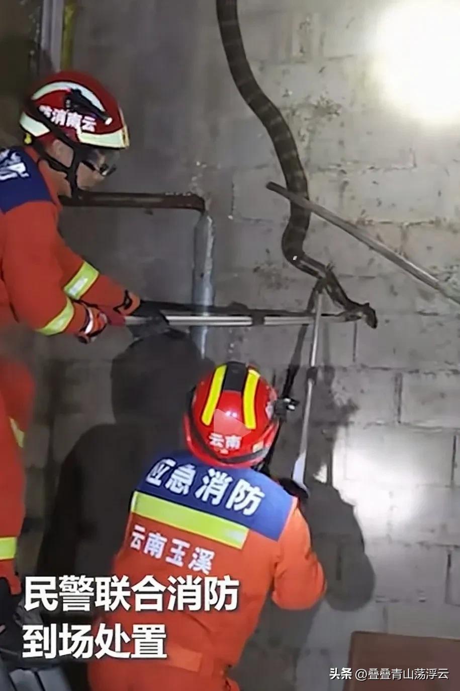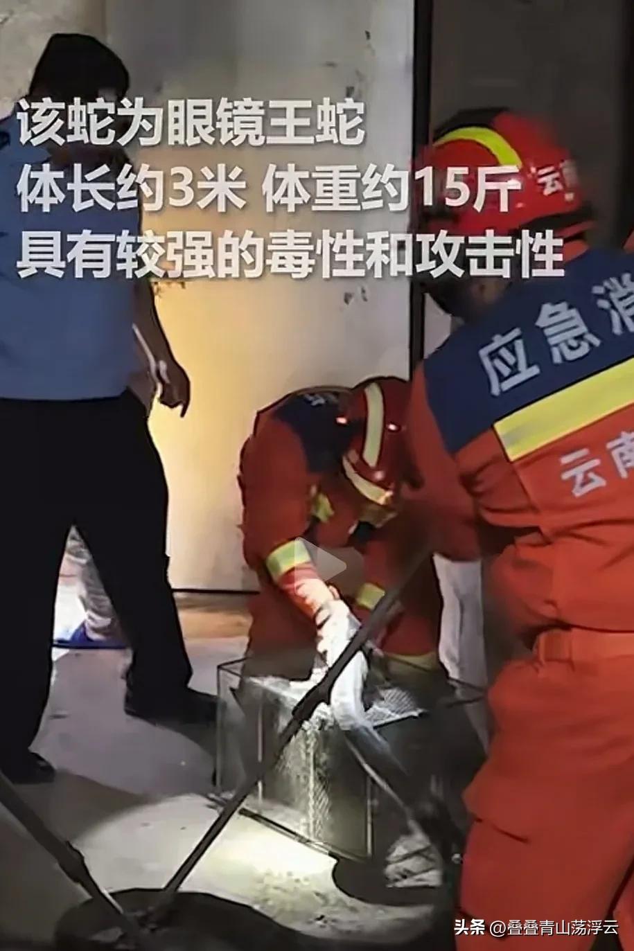 太可怕了! 近日,云南玉溪一村民家的猪圈里,一村民去喂猪,发现房顶上有异响,借着昏暗的光线抬头一看,突然发现一条大蛇在房梁上爬动,村民发现立马扔下猪食拔腿就跑,事后两腿发软,找来人去看,但大家都怕,于是就报警,玉溪消防来到猪圈,一会寻找后,发现大蛇仍在房梁上,立马上前用捕蛇工具制服它,并装入袋子里带走了,据消除叔叔说,此蛇为眼镜王蛇,长3米多,有成人手臂粗,而且超级巨毒,有非常强的毒性与攻击性。 如今春天了,蛇类出没频繁,如果大家野外游玩发现立马远离或报警处理,切不可随意逗弄,以免处在巨大危险之中。云南 毒蛇 眼镜王蛇