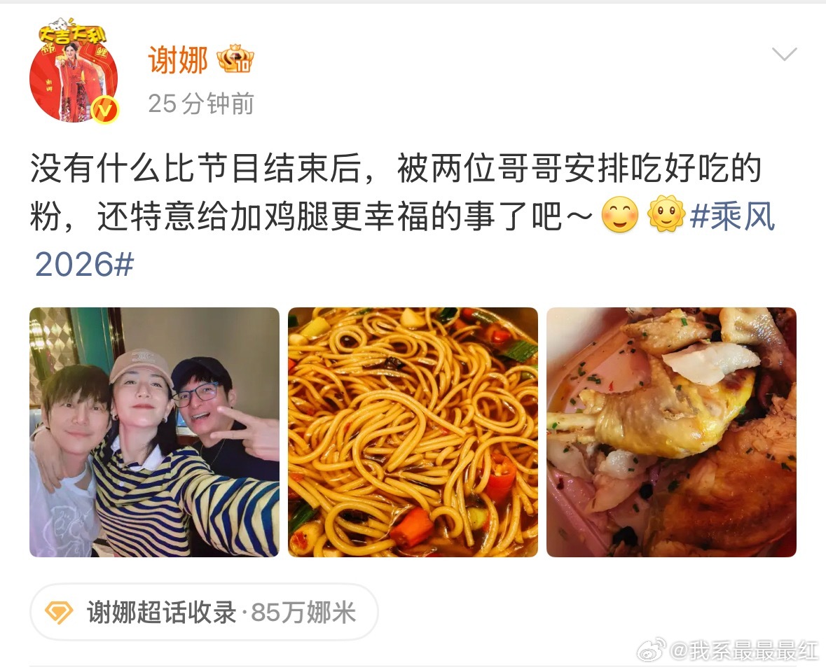 谢娜发行浪姐录制结束~被何炅和维嘉安排了粉还给她加了鸡腿 幸福的娜姐